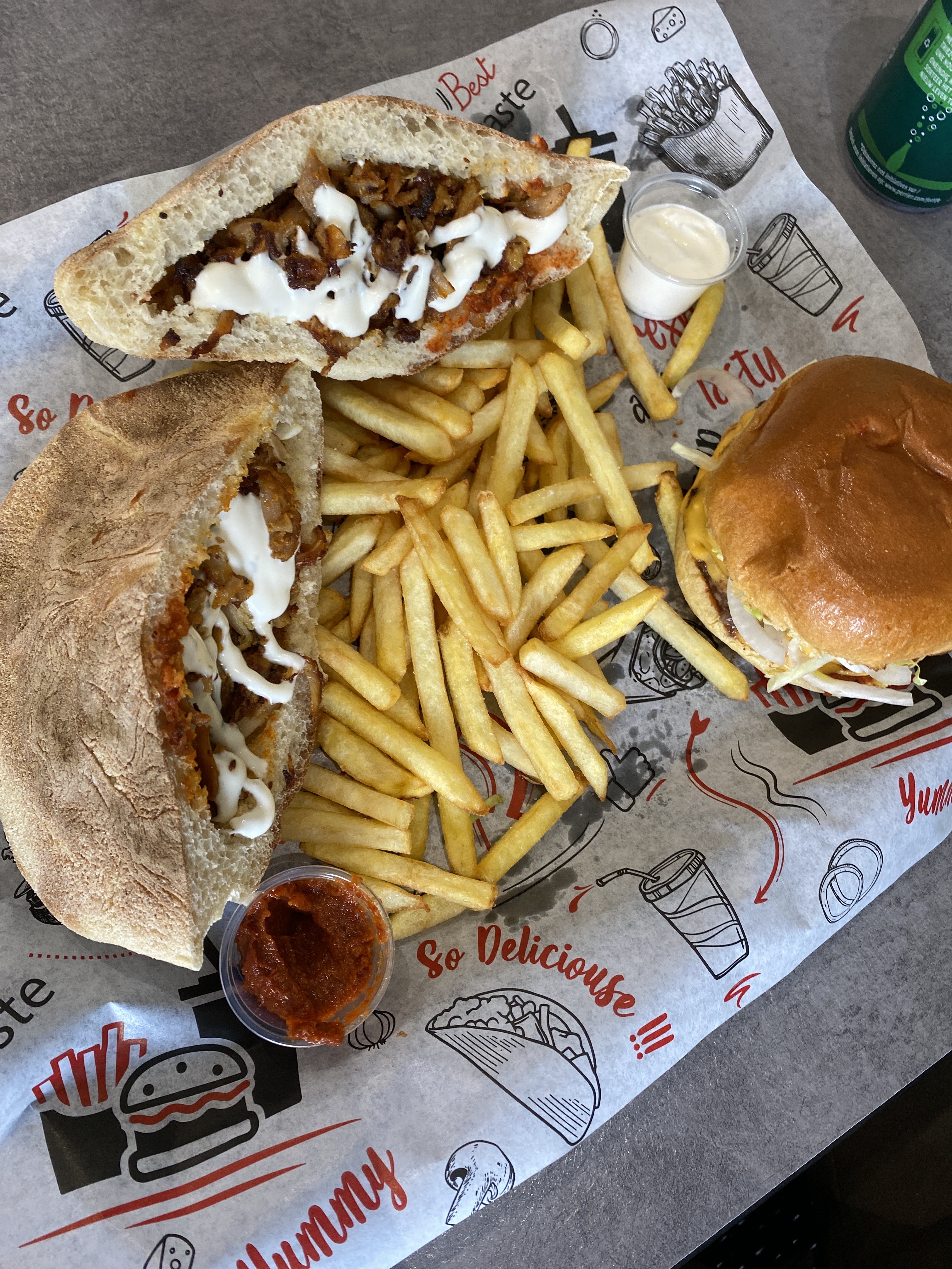Par où commencer, mayonnaise manquante dans un sandwich, autre sandwich reçu avec 3 bouts de viande et très peu de sauce, 2 canettes de coca à la place de la bouteille demandée, 2 orangina au lieu d’un mais ok passe peu importe le prix, tiramisu oreo???? Reçu au cookie à la place, je sais pas si ça s’en rapprochait le plus, mais c’était le seul truc bon. La viande était pas salée. Je sais pas si on te demande un sans crudités, mets au moins des frites dans le sandwich, histoire ça fasse pas vide avec les 2 steaks surtout au prix où est le menu façon bouchère. Frites arrivées froides, enfin tout presque froid. Ne pas livrer sur Marseille si c’est pour 30€ minimum et ne pas être qualitatif. J’ai même plus les mots. J’ai mangé mon seum, mais InshAllah tu t’améliores. Y’a quand même des snacks à Marseille qui sont moins chers et meilleurs, donc pour un test et 1ere fois, je recommande pas du tout, ce sera aussi ma dernière. Je suis dégoûtée mais je vous souhaite quand du positif. Bon courage… J’ai quand même envie de pleurer, c’est trop…