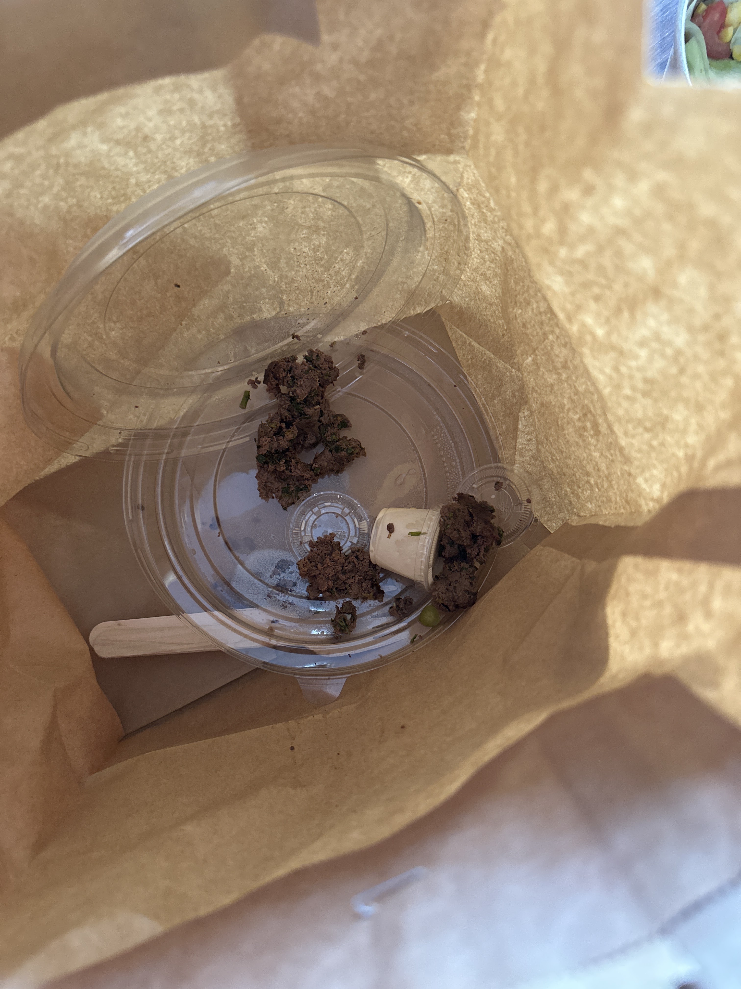 Kebab pas bon, viande bizarrement baveuse, j’ai peur d’être malade Je ne recommande pas cet établissement