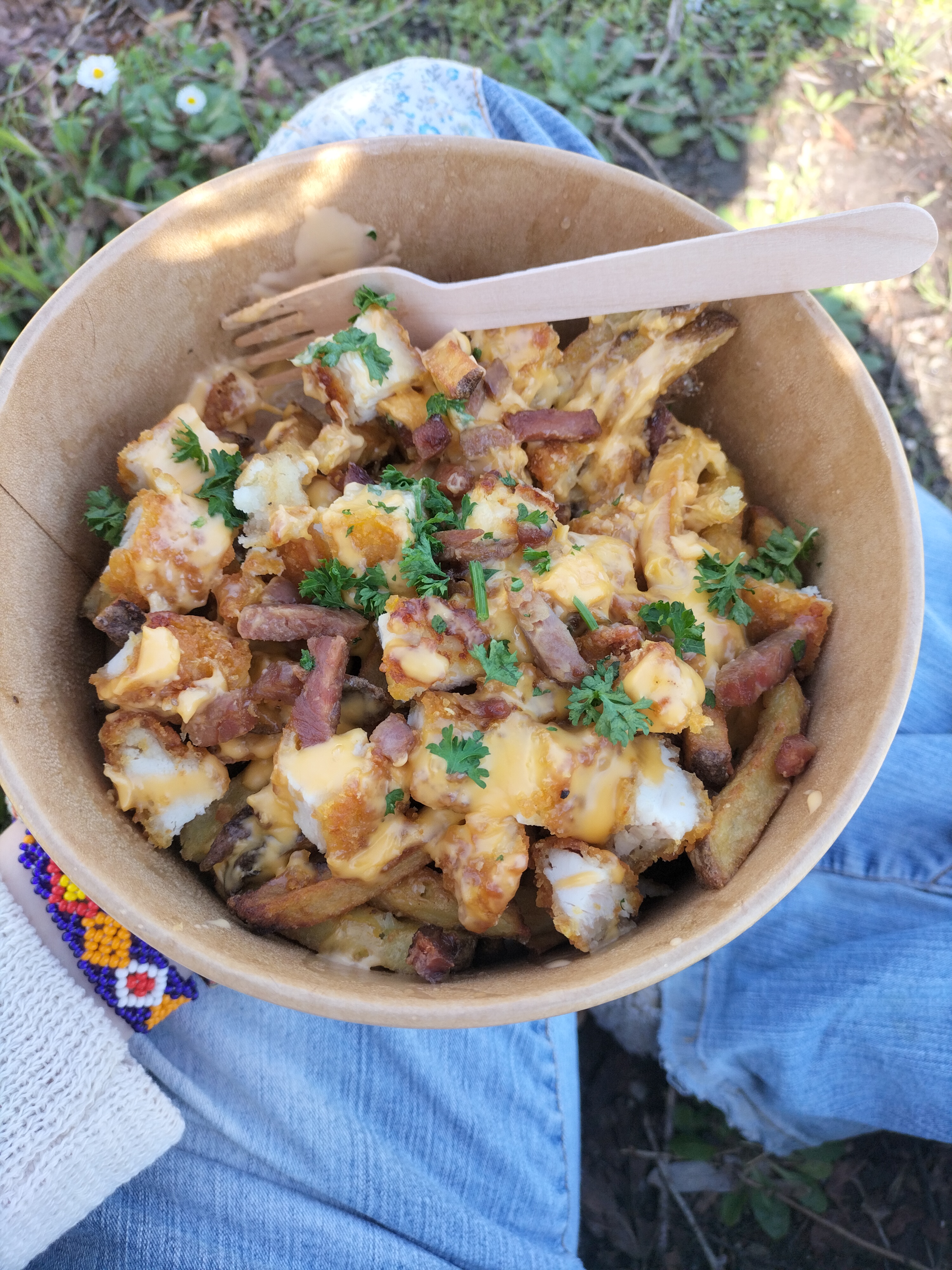 Crunchy Poutine un poil trop salé à mon goût mais très bonne. Le sandwich végétarien est un délice selon mon amie.