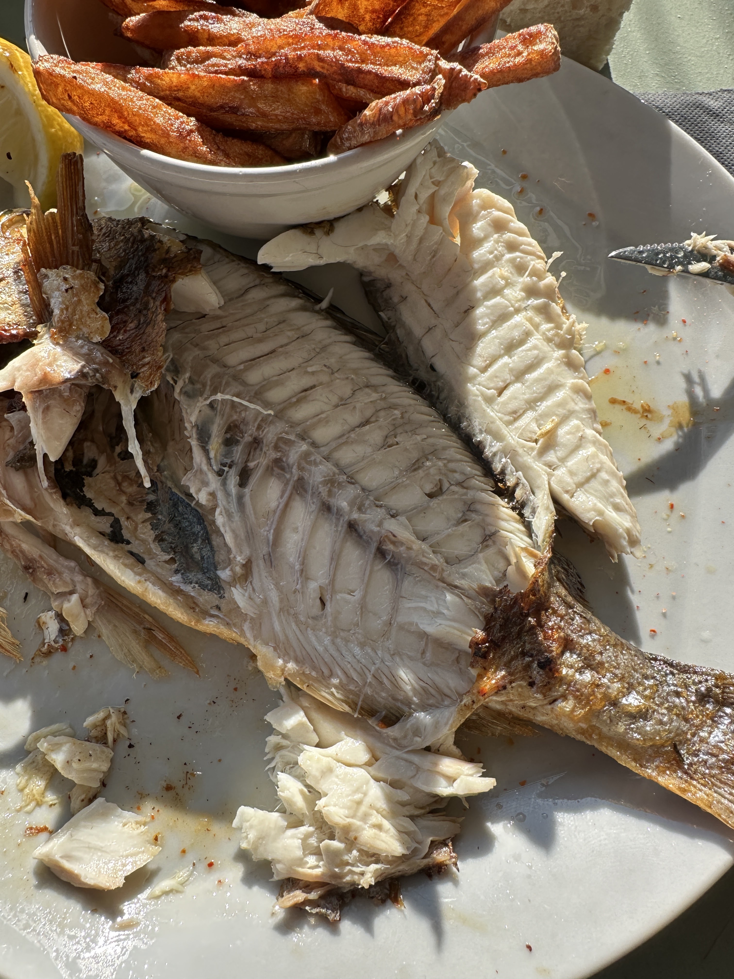 De passage sur Sète, nous sommes tombés sur ce restaurant un peu par hasard en nous promenant. Avec ce magnifique soleil, nous avons décidé de manger en terrasse sans regret car le spot est cool. Excellent accueil par 2 monsieurs nous avons choisis une daurade et ses frites maison, un délice les photos parlent d’elles mêmes. Le poisson est frais, la chair est tendre, l’assaisonnement et ce côté croustillant était délicieux ! La daurade est de qualité. L’entrecôte était très bonne tendre servis aussi avec des frites maisons, d’ailleurs vous avez le droit à d’autres accompagnements. Merci au patron pour l’accueil chaleureux Nous reviendrons avec grand plaisir. E recommande sans hésitation