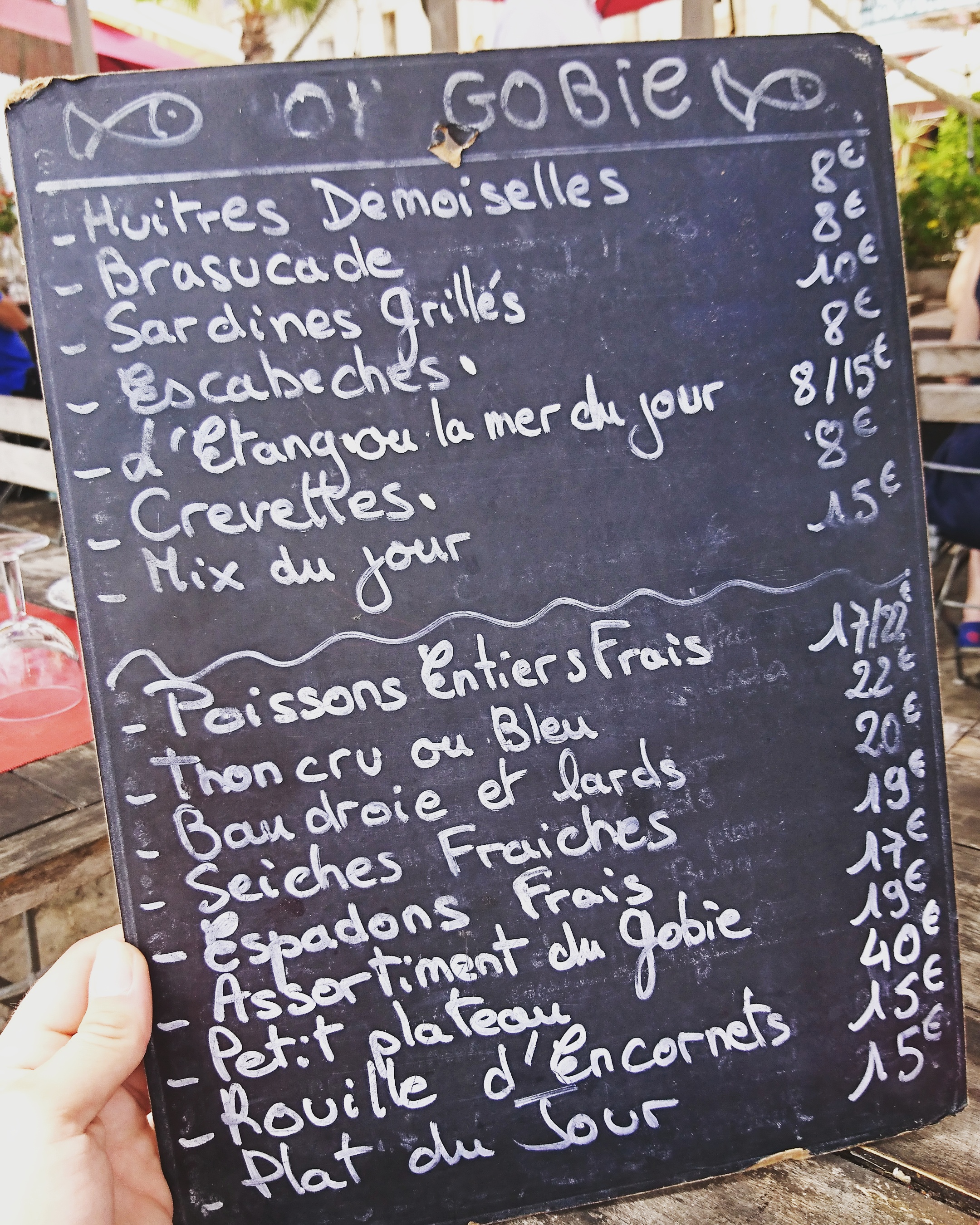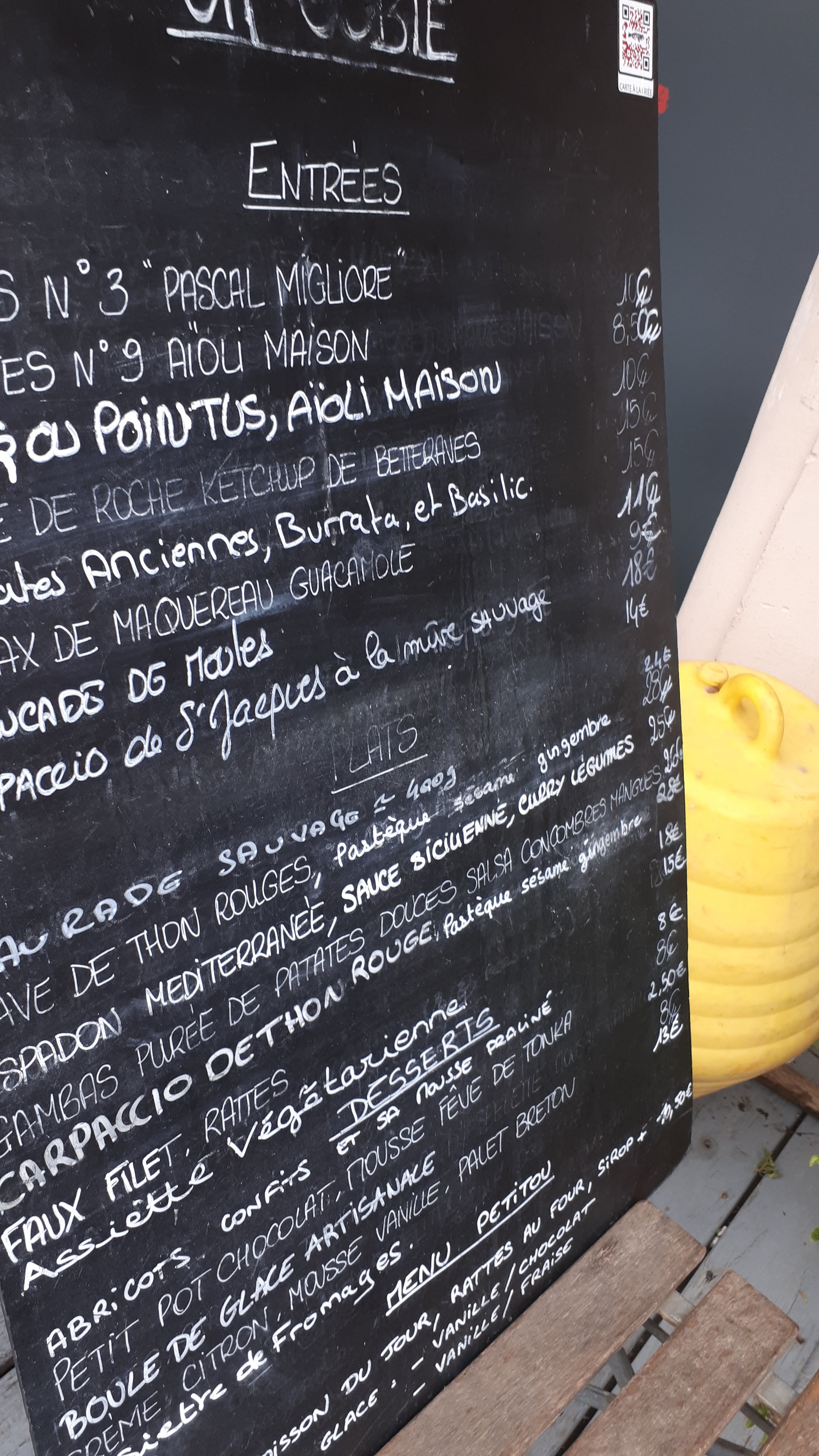 Bien déjeuner en terrasse en plein hiver? Ne cherchez pas vous êtes au Oh Gobie à Sète! À l’abri des chalutiers majestueux au repos le week-end vous appréciez l’odeur de la marée et évidemment au menu vous pouvez choisir des produits frais qui hument bon la mer! Le patron vous accueille avec un message bien personnel! (photo 1) Il offre depuis 10 ans une cuisine authentique bien loin du tout venant.
