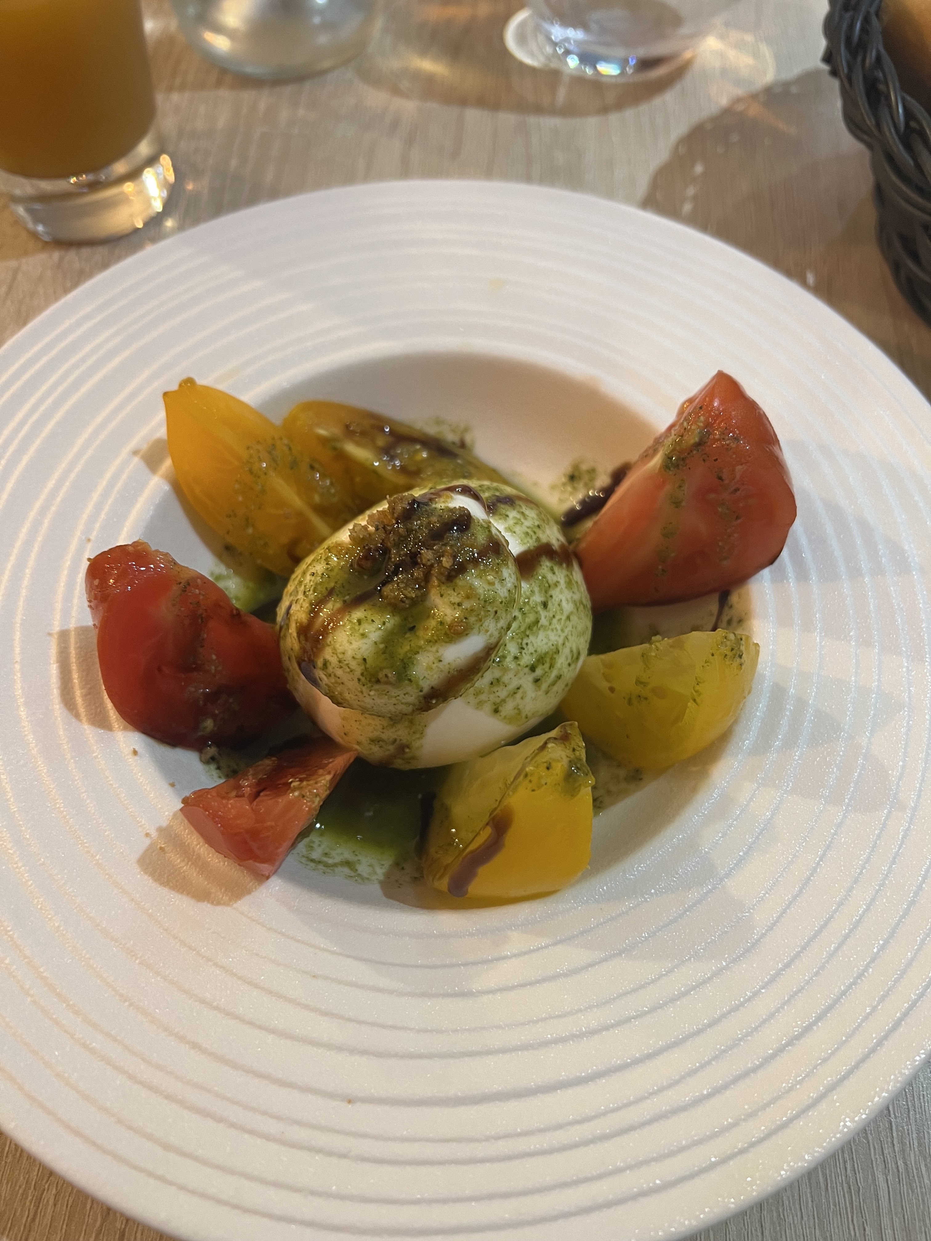 Honteux, la burrata 17,50 euros pour une pauvre assiette avec une quantité d’oiseau ça devrait être spécifiée sur la carte comme une entrée, tout est cher et on y mange peu même le café est a micro dose une petite tasse qui pourtant n’était même pas rempli à la moitié et finit en une gorgée. Bref étant touriste je ne recommande pas a d’autre touristes de s’y rendre.