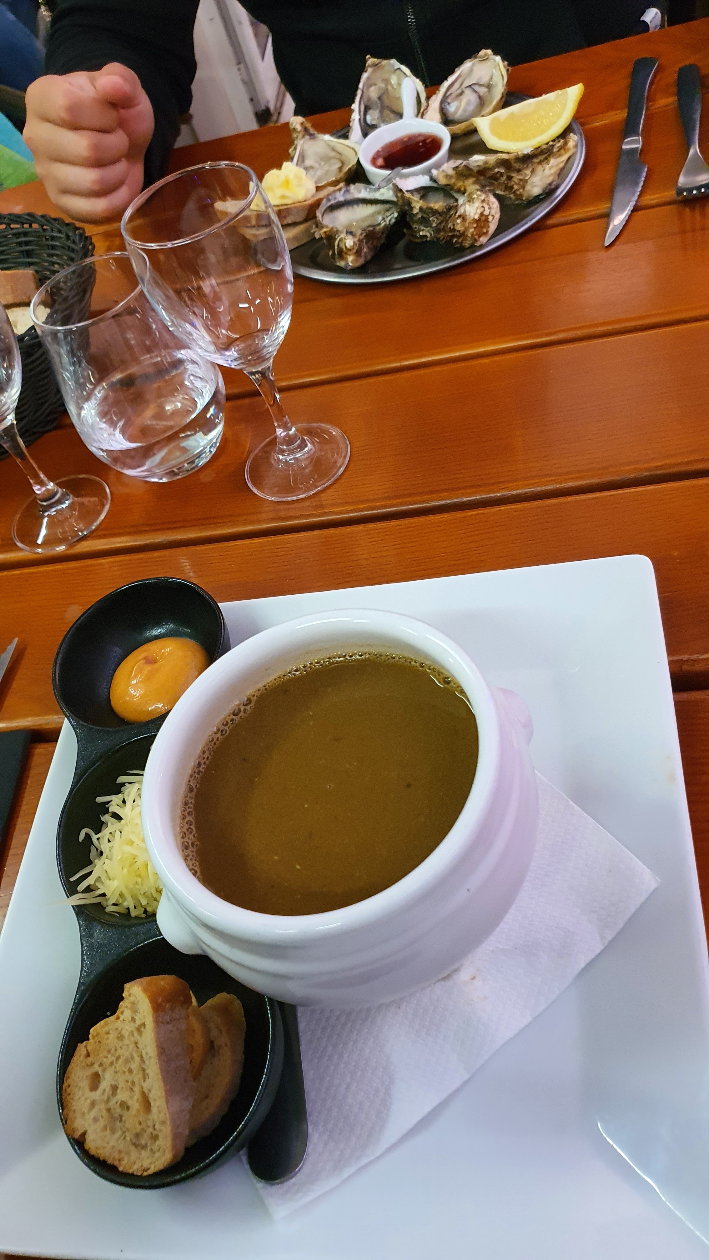 Temps d'attente trop long (45 min pour 2 plats, pas cool pour le rosé plus frais). Huîtres servies à température ambiante et pas froide. Planche de tapas charcuterie fromage très grasse avec 4 petits triangles de manchego. Charcuterie bonne. Déçus vu les prix élevés
