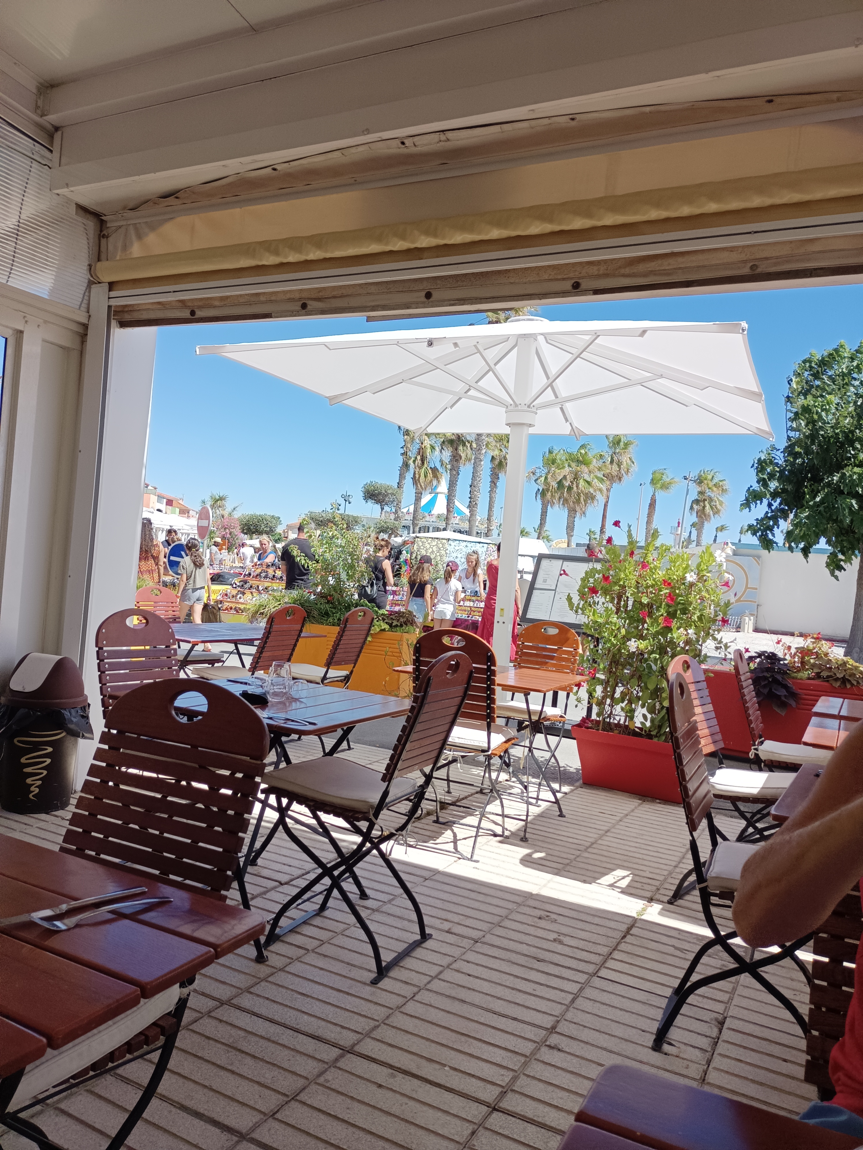 Un lieu très sympa. En plein centre du Barcares village. Le lunch est encore raisonnable. 20 eur entrée plat dessert et 1/4 de vin . Tout simplement parfait