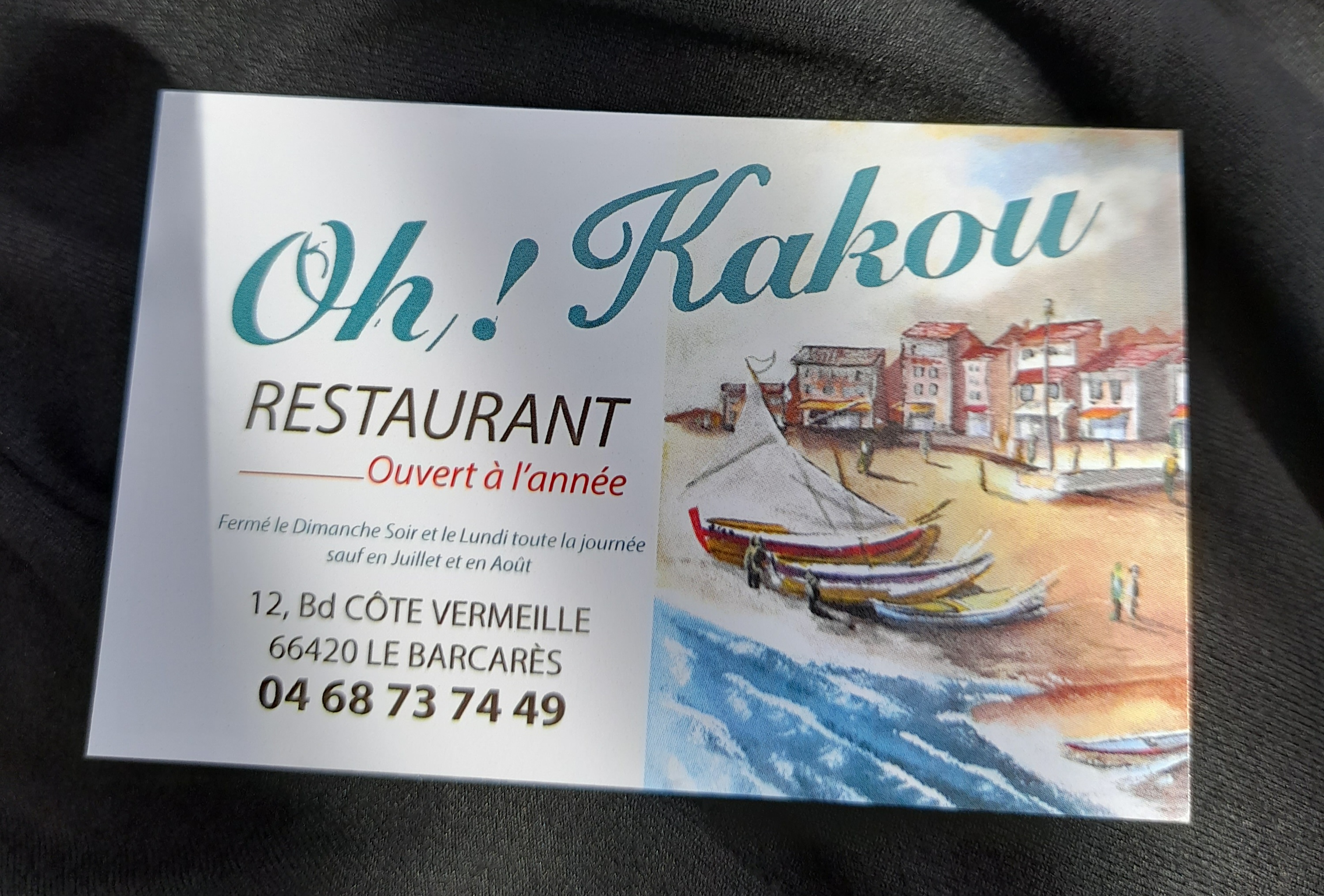 Voici toutes les informations sur le Restaurant Oh Kakou qui ce trouve au 12 Bd de la Côte Vermeille, 66420 Le Barcarès (66). Sur cette fiche vous trouverez les photos, l'adresse, les horaires d'ouverture, le numero de téléphone et les avis clients.Vous pouvez églement rédiger un avis si vous le souhaitez en bas de page.