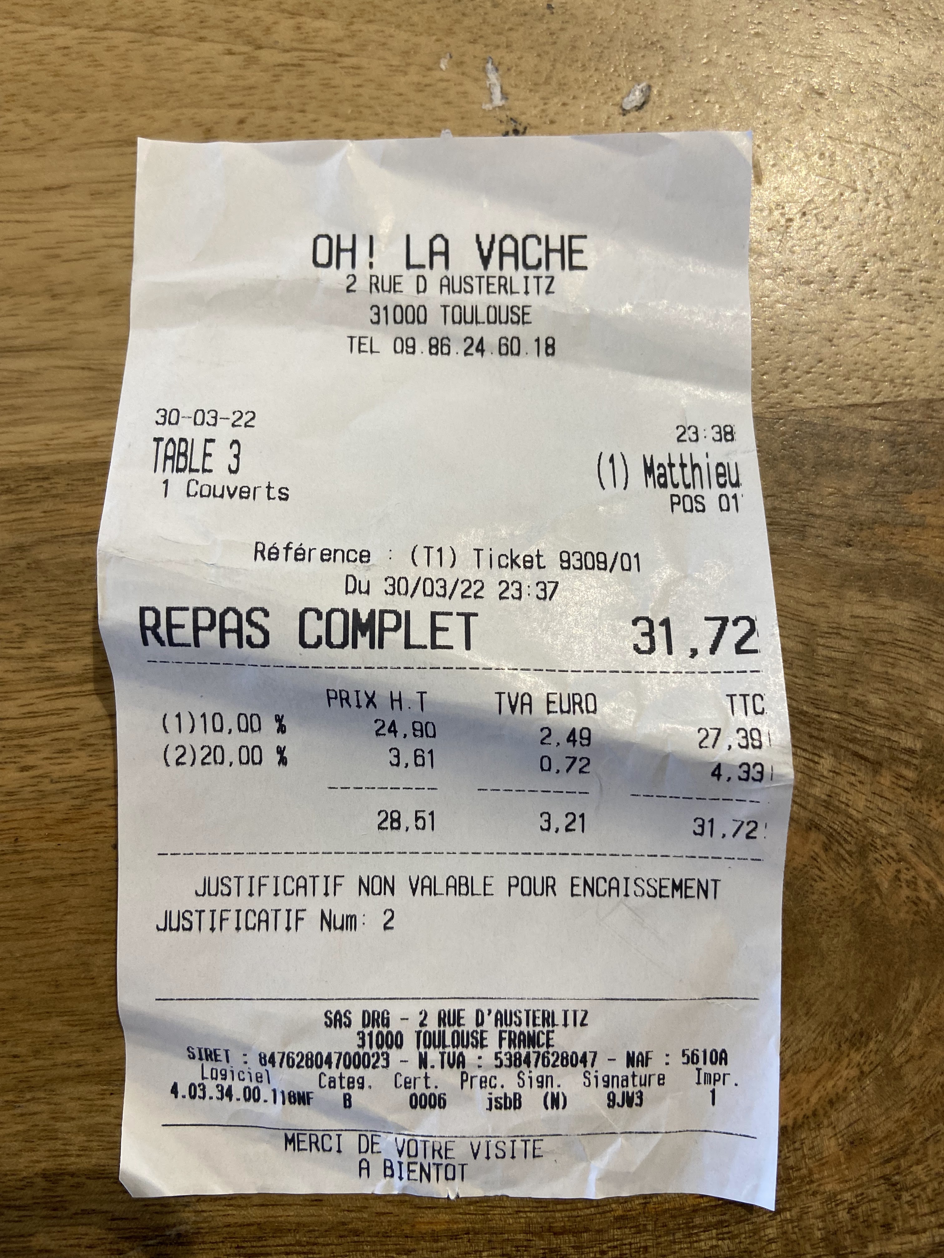 Nous étions sur Toulouse...nous avons cherché un resto avec de bon commentaire...oh la vache nous a paru bien.. Nous étions 7 per..et tous unanimement.. Super resto..très bon..très propre.. prix raisonnable...ils ont un gratin dauphinois exceptionnel vraiment. On vous le recommande.