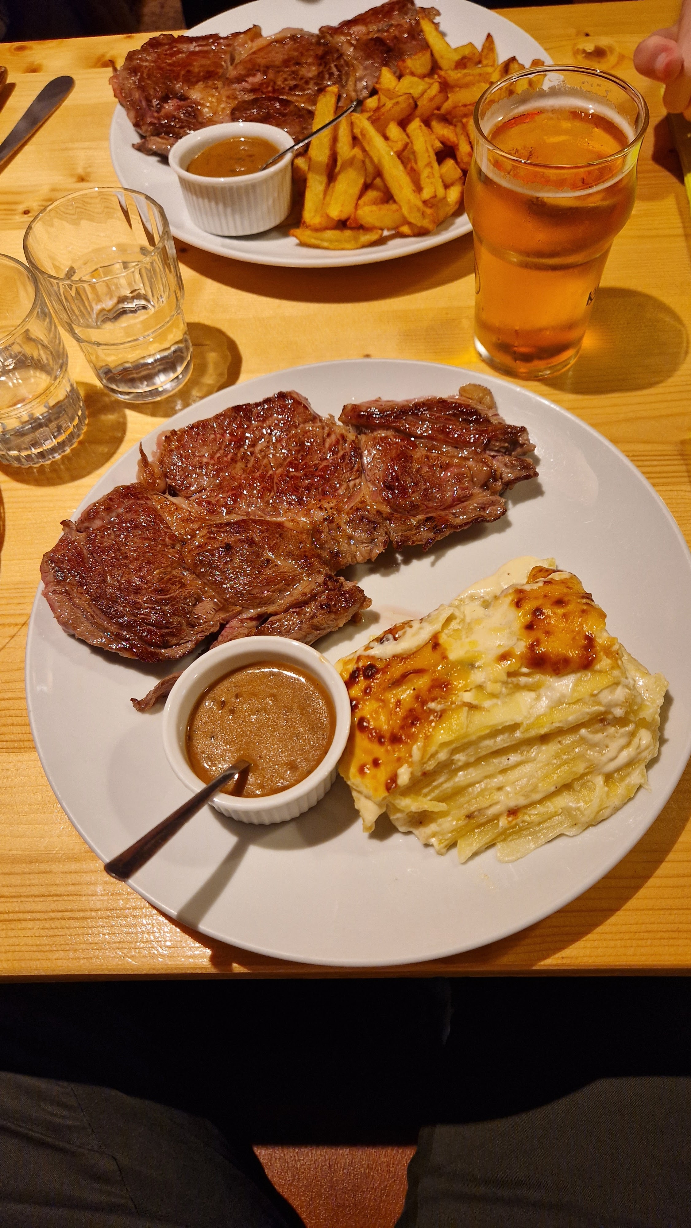 Accueil très sympa. Cuisine excellente. Cuisson parfaite. Je confirme le gratin dauphinois est une tuerie. Restaurant agréable tant pour une soirée en tête à tête, qu'en famille. On s'est régalé. Merci pour votre accueil notamment aux serveuses qui sont aux petits soins. J'ai oublié de faire les photos des plats (trop pressée de manger🤭) merci pour le supplément de gratin ! Laurette est trop chou.