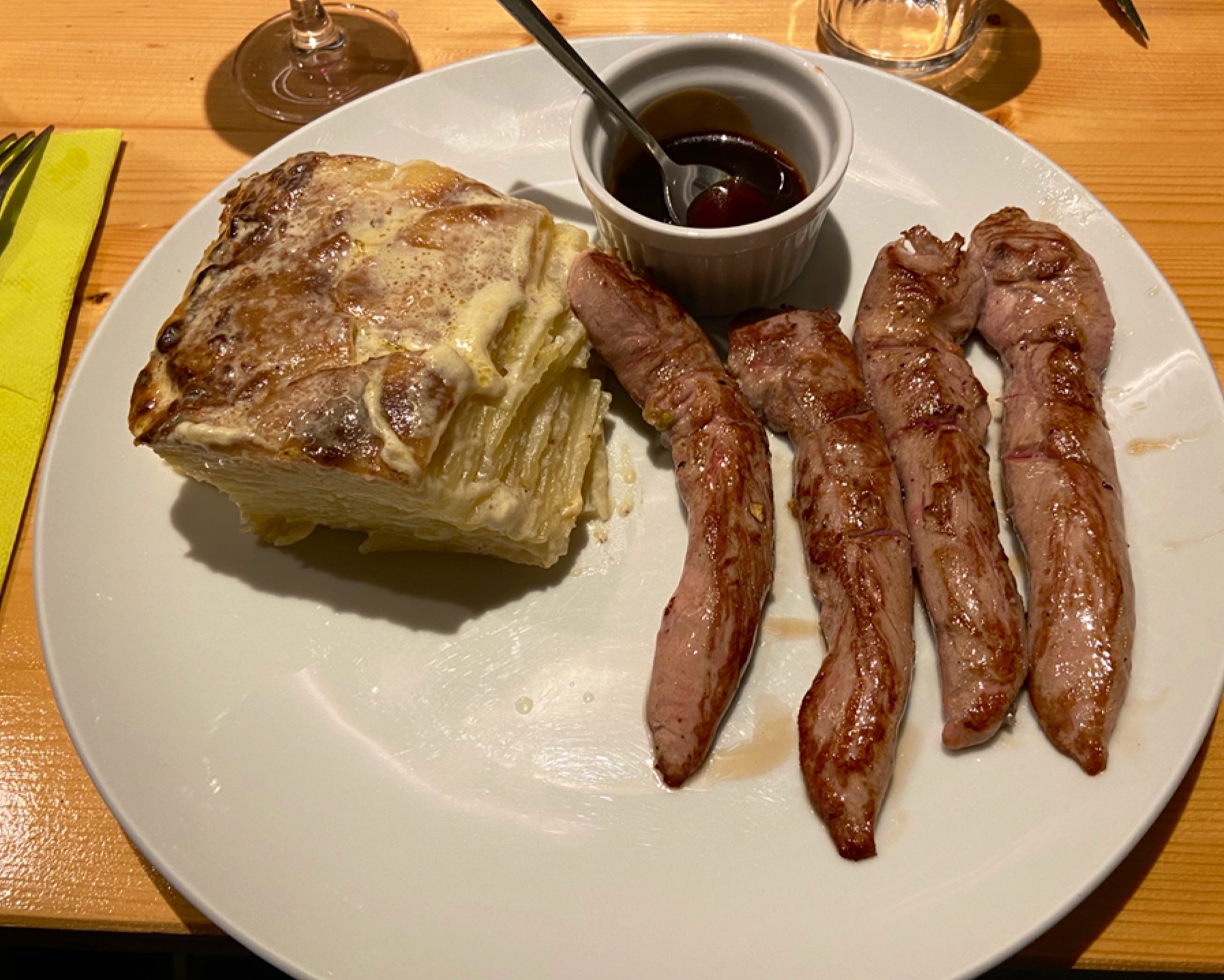 Tout simplement le meilleur magret de canard que j'ai jamais mangé ! Et que dire de l'excellent gratin dauphinois, mis à part qu'il est absolument divin, fondant en bouche ... un pur délice ! Les desserts sont également très bons. L'ambiance est au top, très chaleureuse et accueillante, et pour finir, la cerise sur le gâteau : l'extrême gentillesse et amabilité du personnel. Nous avons passé un très bon moment entre amis ! Je recommande les yeux fermés !