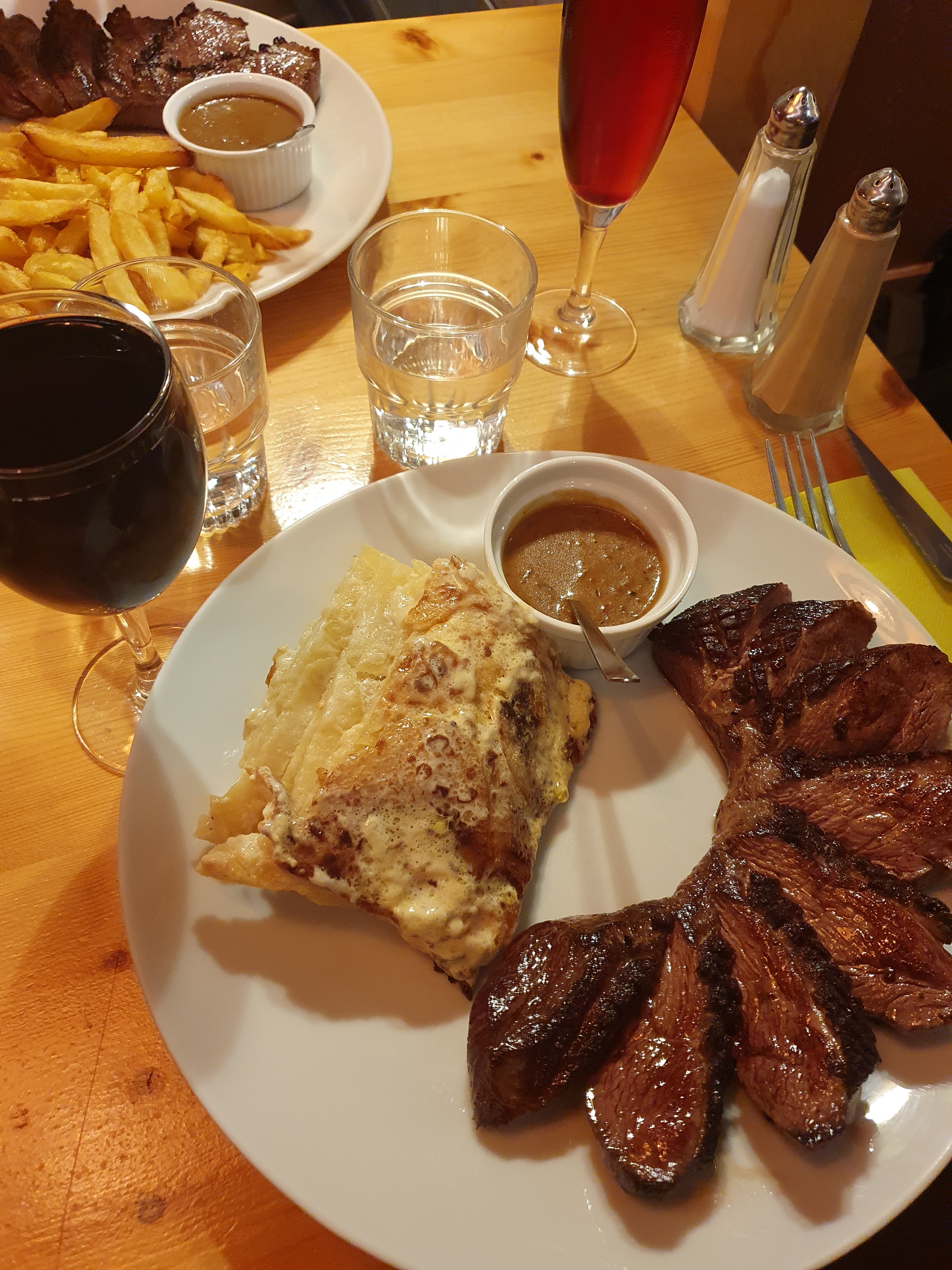 Le premier soir, un plaisir, tel une balade locale simple mais goûteuse. Une coïncidence? J’en doute! Car le lendemain, l’extase du gratin, la douceur de l’entrecôte, le service rapide pour le palais solitaire. Accueillant, discret et rapide, je le recommande que vous soyez de passage ou du coin!