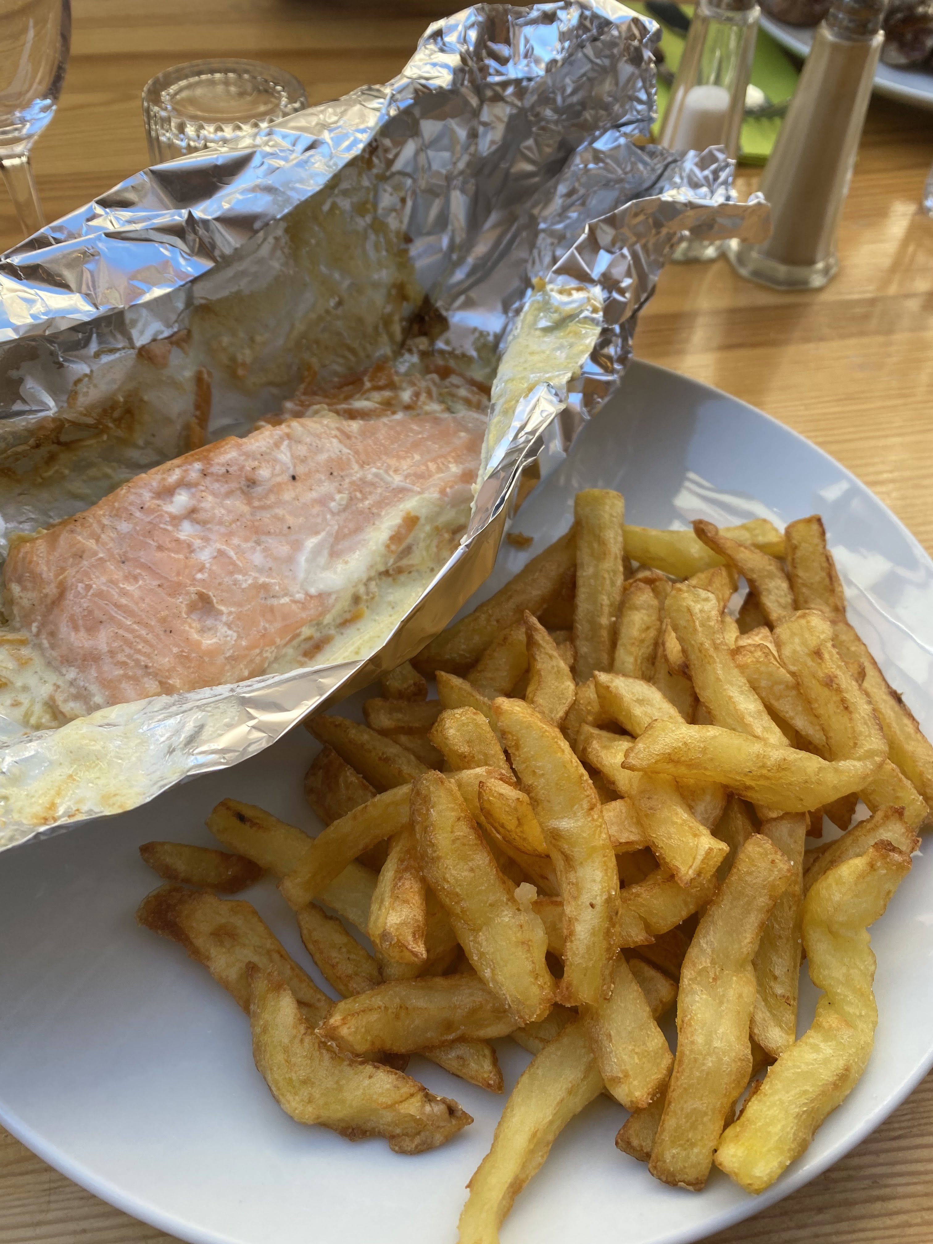 un service chaleureux et rapide, un saumon à tomber par terre et des frites très bonnes j'y reviendrais