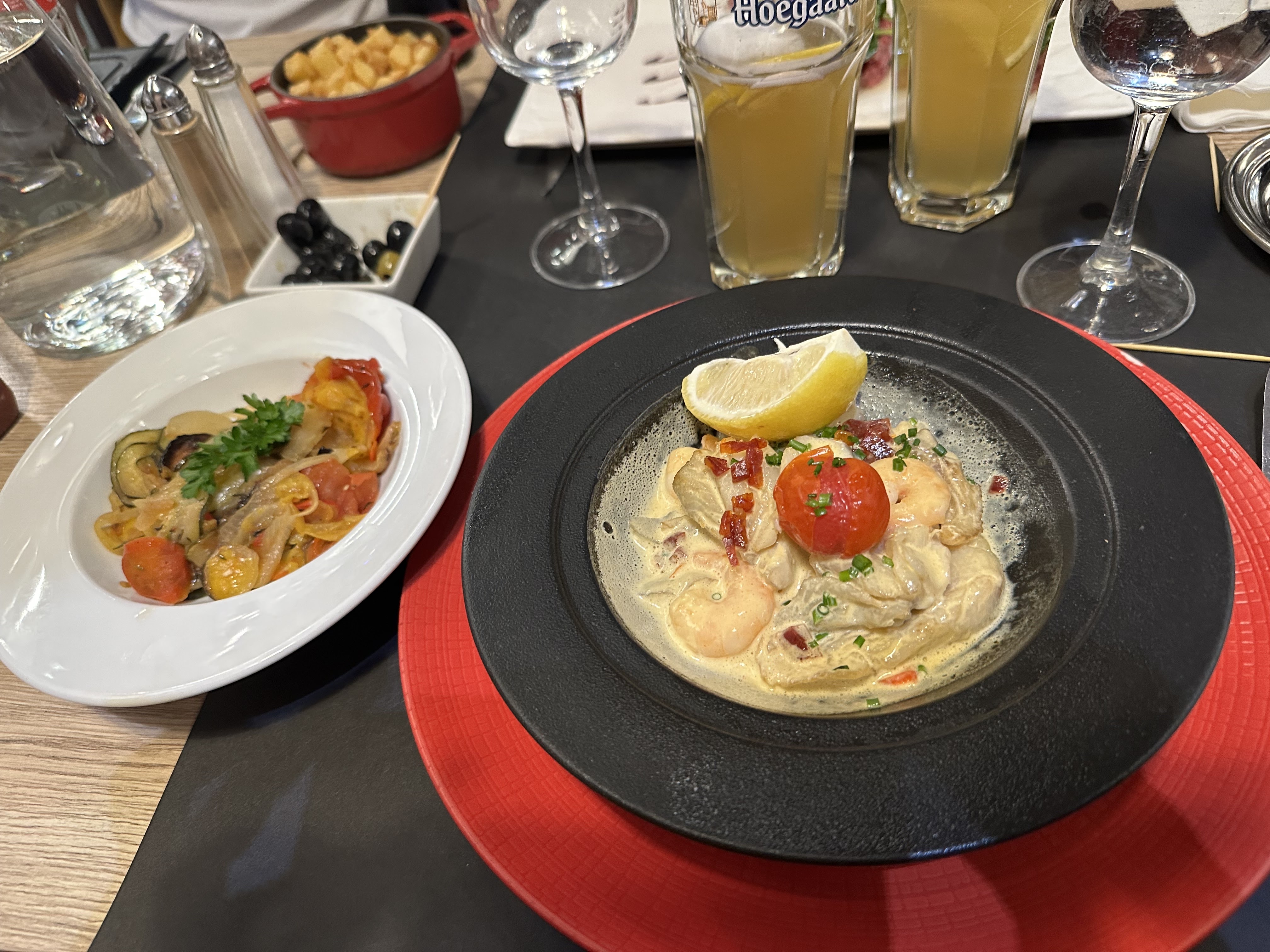 Repas en terrasse à deux avec menu complet. Très bons plats et service au top.