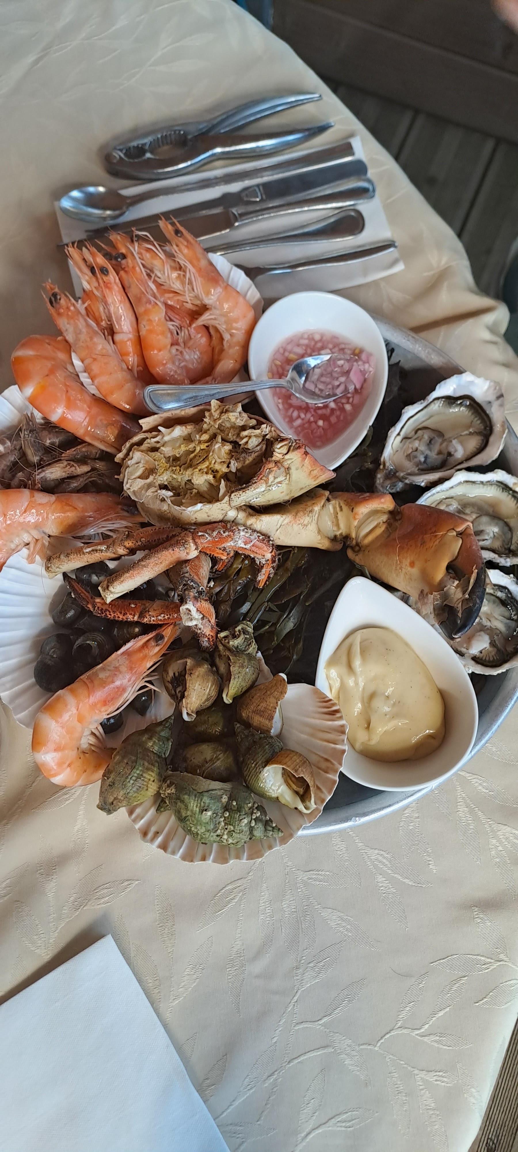 Un petit passage ce midi dans ce grand restaurant De la mise en bouche au dessert en passant par l'entrée au saumon puis entrecôte et plateau de fruit de mer Juste magique cuisine délicieuse visuellement que gustativement Un merveilleux moment passé Personnel agréable à l'écoute et aux petits soins le patron également Bravo à toute l'équipe de salle de prise de commande des cuisines et du chez cuisinier continuez comme ça nous recommandons à 100 % et revenons l'année prochaine 😉