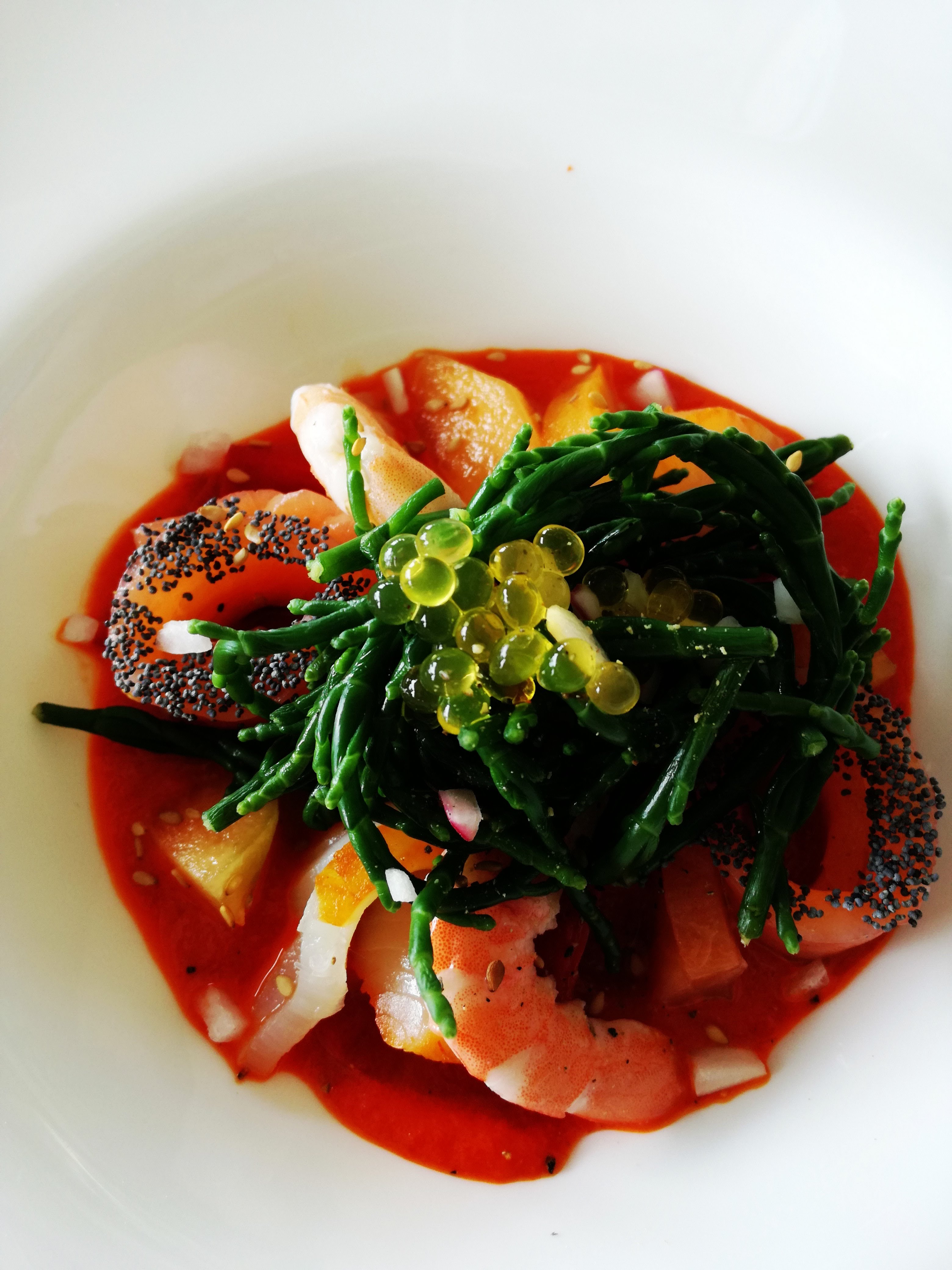 ❝ Cuisine bistronomique axée sur les fruits de mer et les poissons dans une salle avec vue sur la Manche. ❞