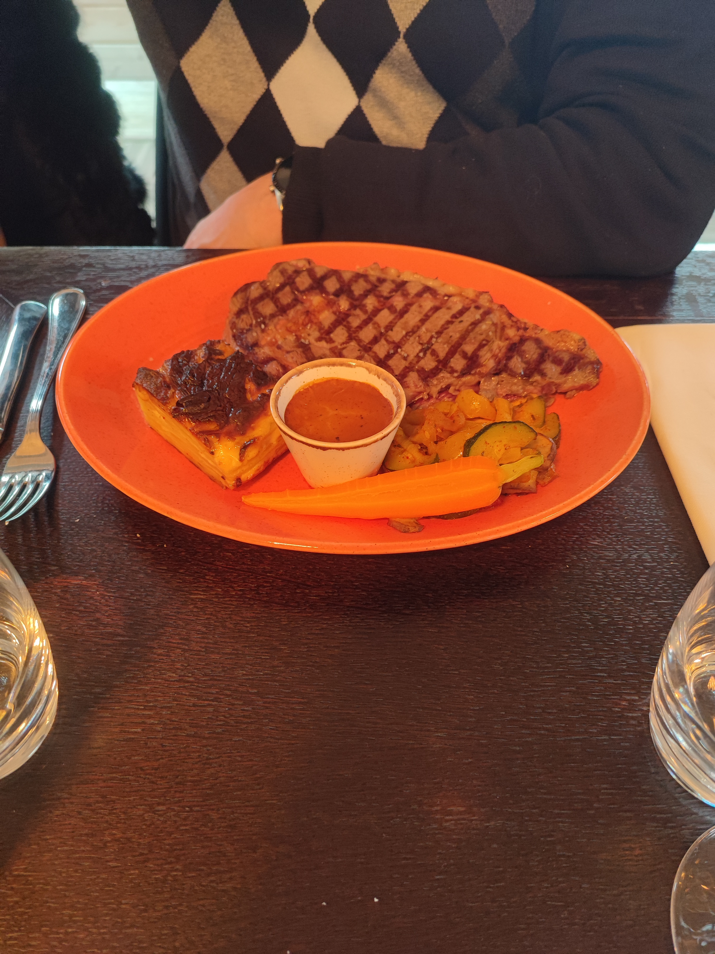 Accueil chaleureux malgré le fait d'être à l'approche des dernières commandes ! Nourriture délicieuse, joliment présentée et portions généreuses. L'ambiance était animée, locale mais pas intrusive. J'ai hâte de notre prochaine visite - merci à tous !
