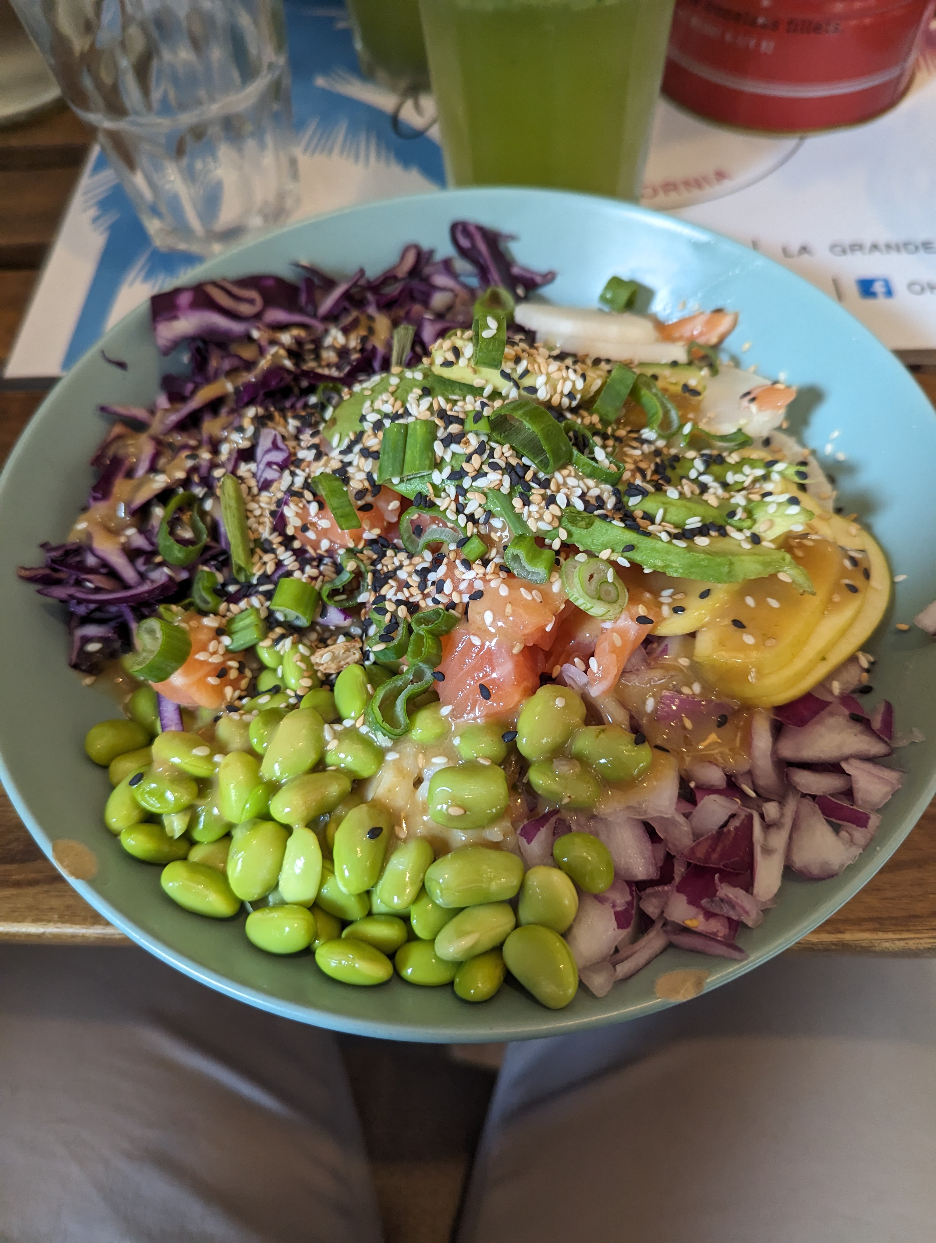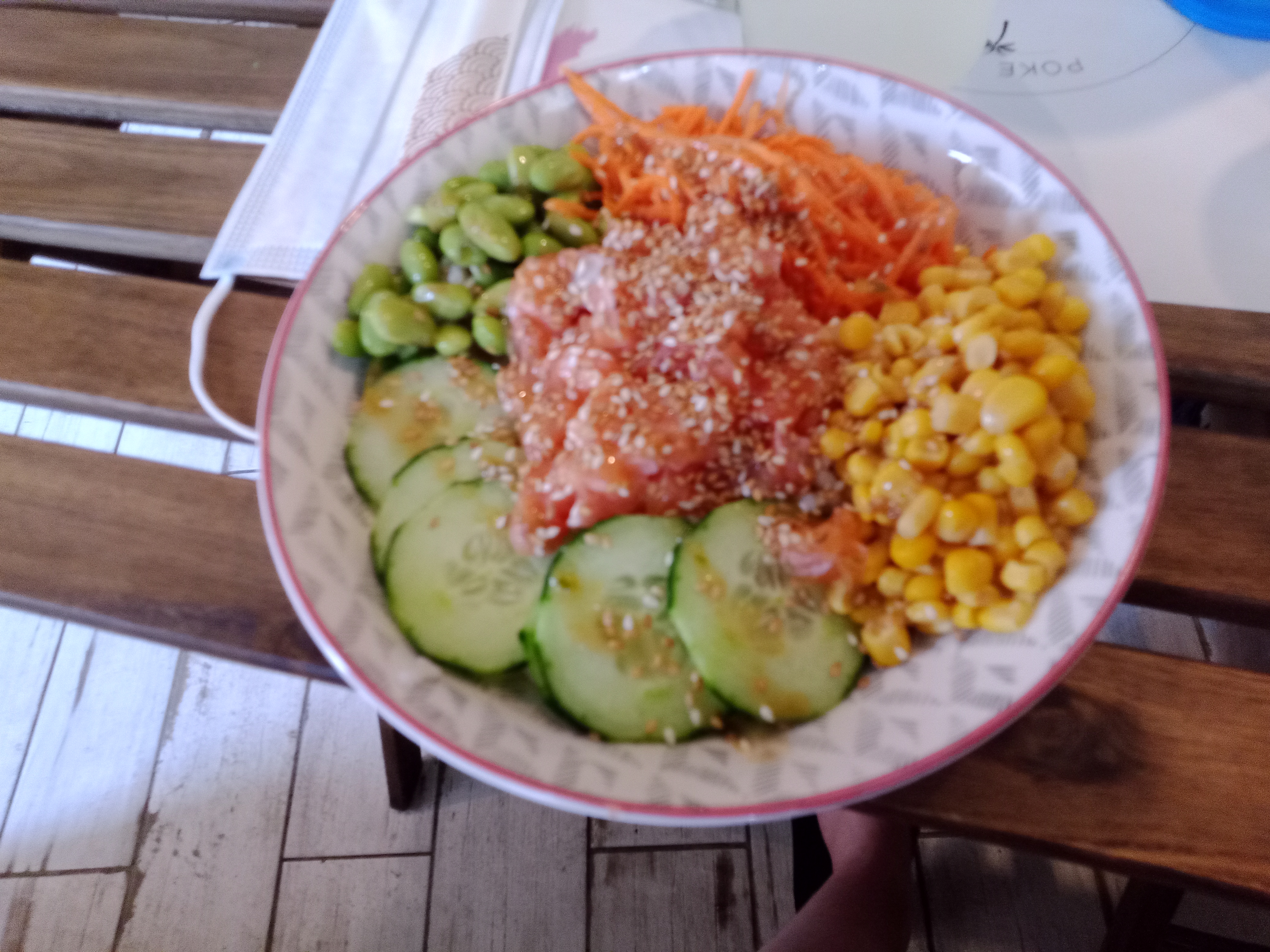 Je n’ai pas aimé, c’est la première fois que je mangeais un Poke Bowl. Je ne pensais pas que le plat allait être froid. Mais sinon rien à dire : les fruits et les légumes sont frais et de qualité. Le personnel est très sympathique. Donc si vous aimez les Pole Bowl, foncez-y !
