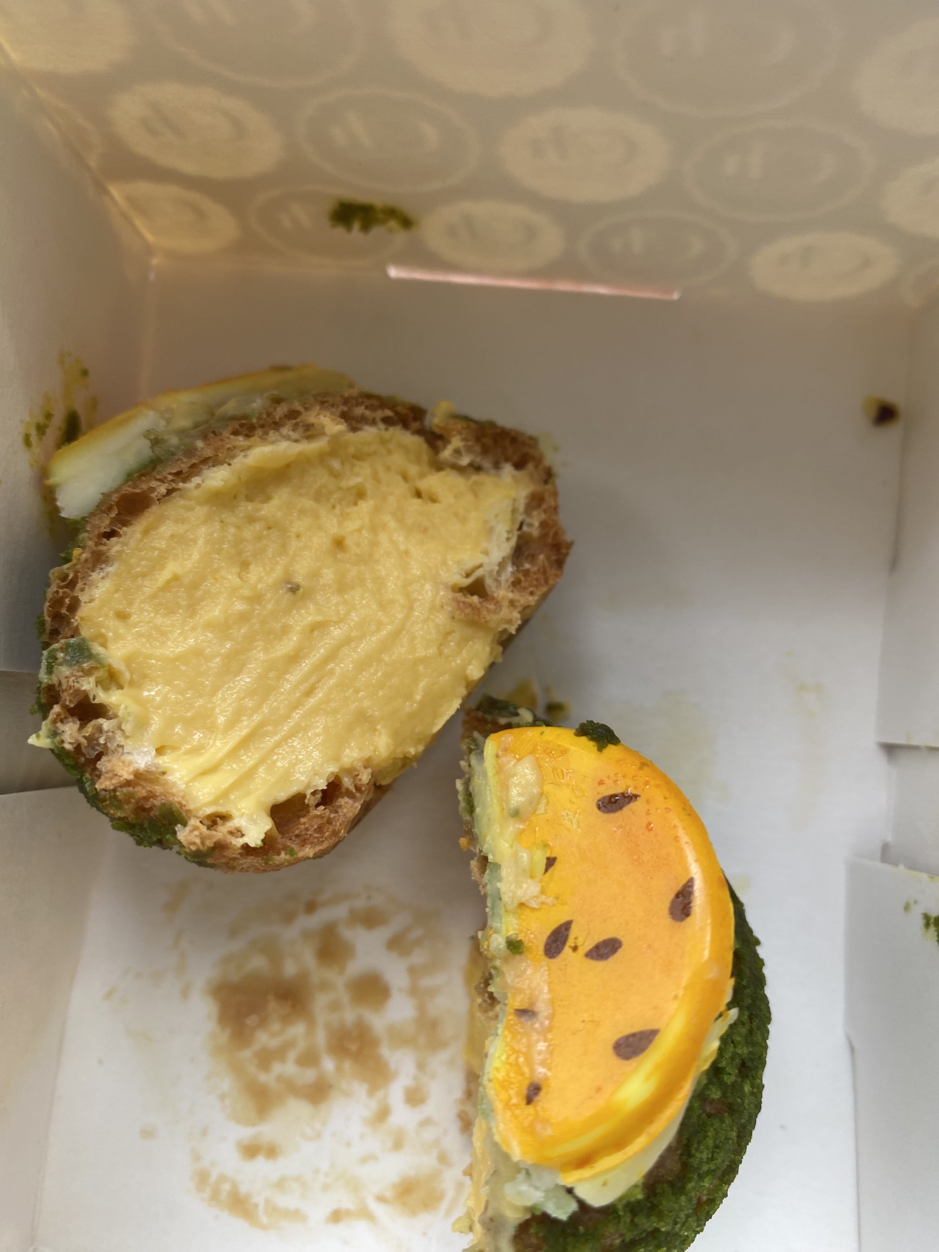 Le chou citron meringuée est tout simplement EXCEPTIONNEL. La crème citron a l’intérieur est bien acide et à un vrai goût de citron, ce qui est très rare de nos jours.. Je reviendrais encore et encore pour ce chou, et je souligne l’excellent accueil d’un jeune homme sur place