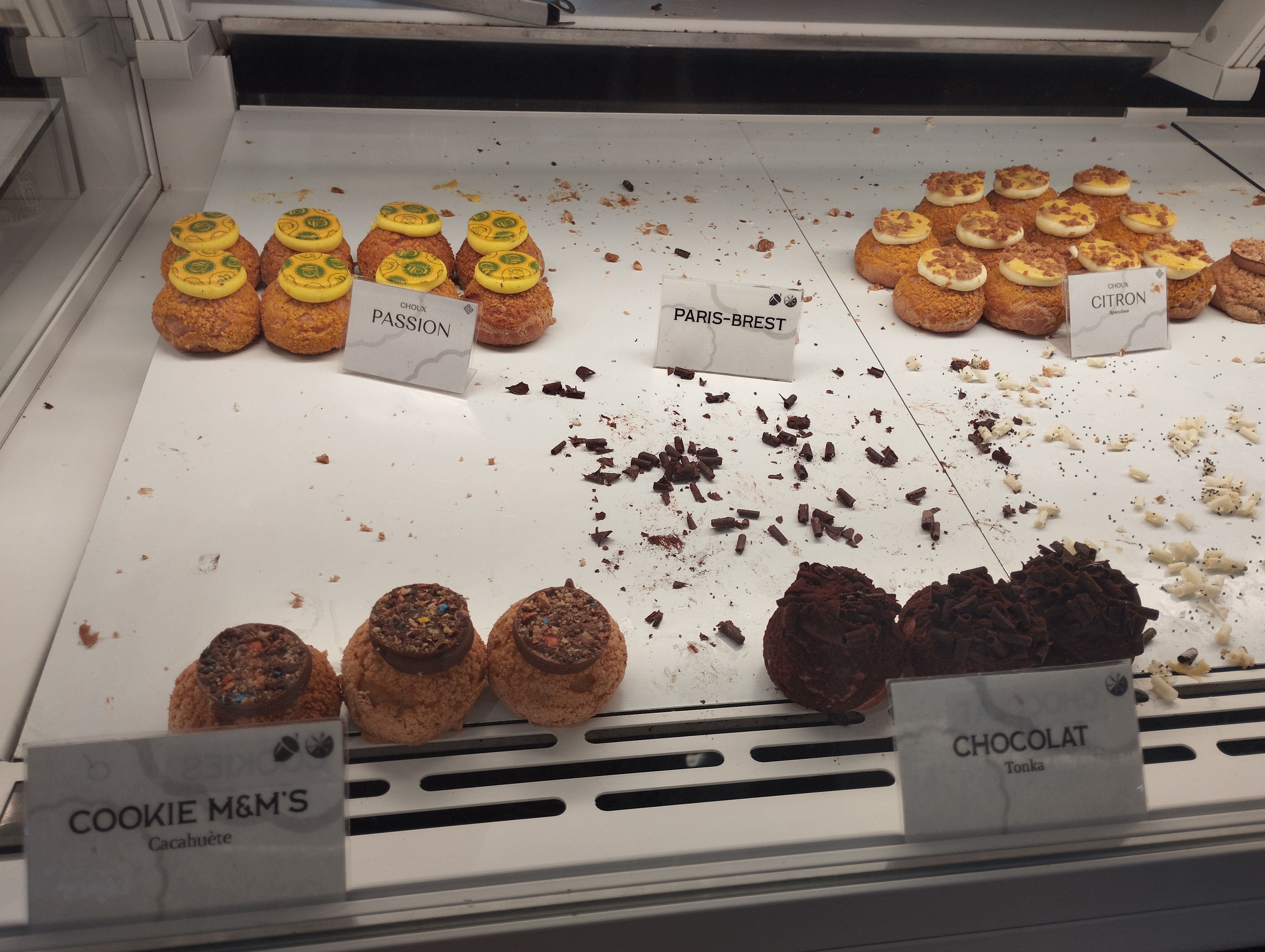 Choux appétissants mais semblent avoir été décongelés, la pâte à choux n'est pas légèrement craquante mais très spongieuse au lieu de ça. Au regard du prix, cela me semble assez peu intéressant et dommage. Concept original cependant.