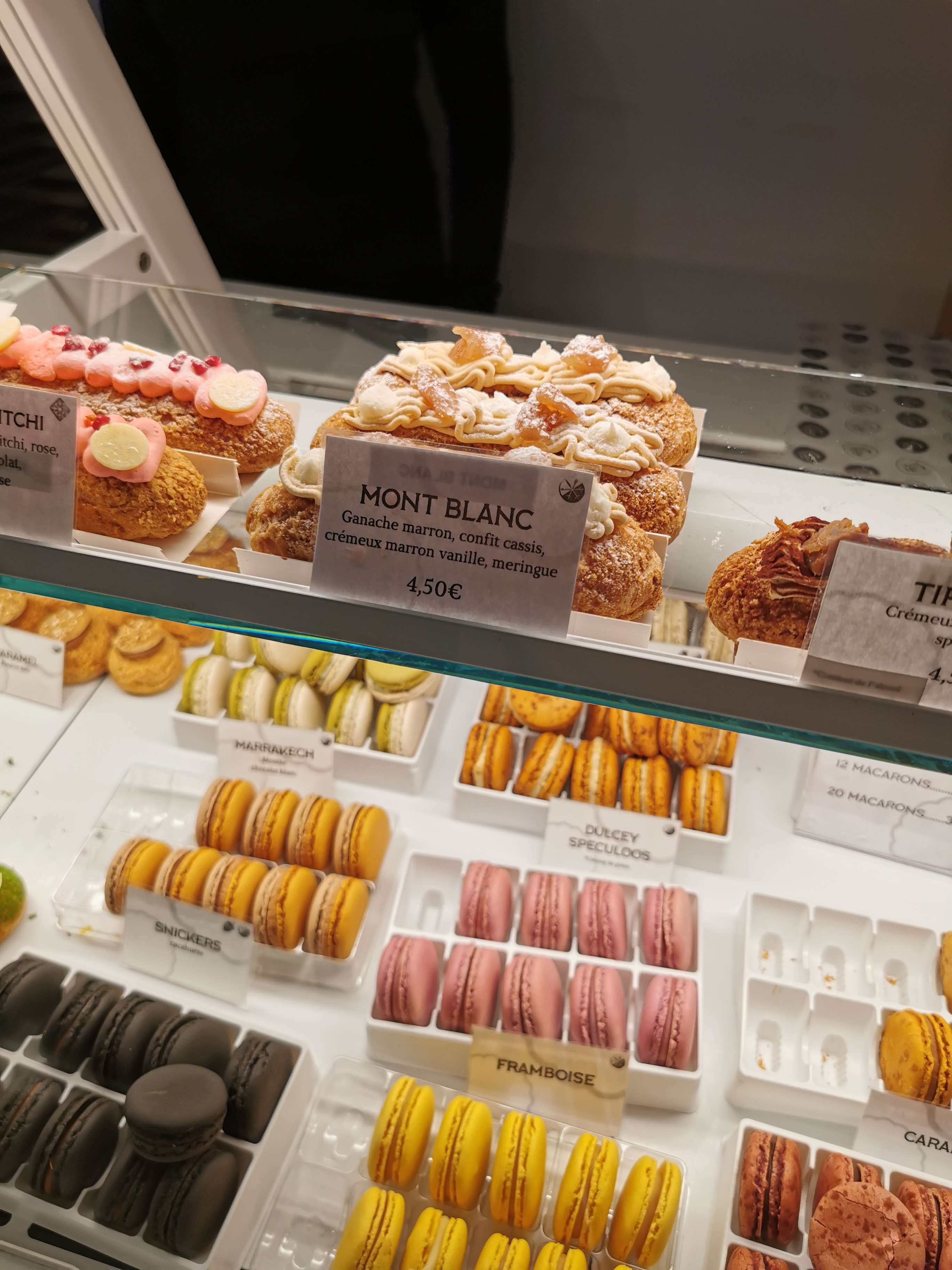 Avant d'aller au cinema, Nous avons pris un Mont-blanc et macaron caramel... Heureusement qu'il y a encore des pâtissiers de talent et originaux qui proposent des produits de qualité et accessibles. Et bravo au service qui connait chacun des produits...