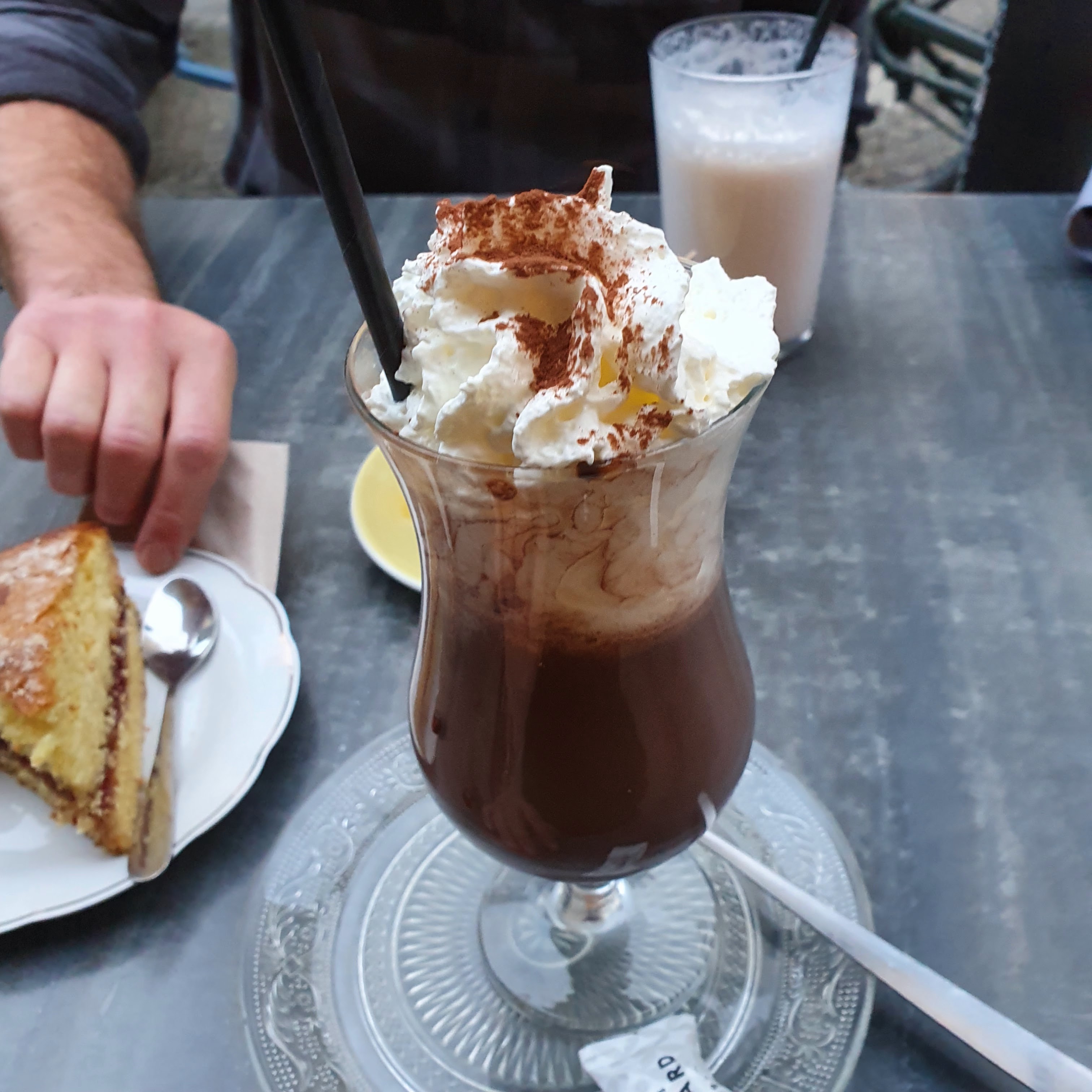 Un chocolat chaud très généreux ! Les pâtisseries sont délicieuses, je recommande vivement ! Attention par contre, l'endroit est facilement rempli, préférez y aller en semaine.