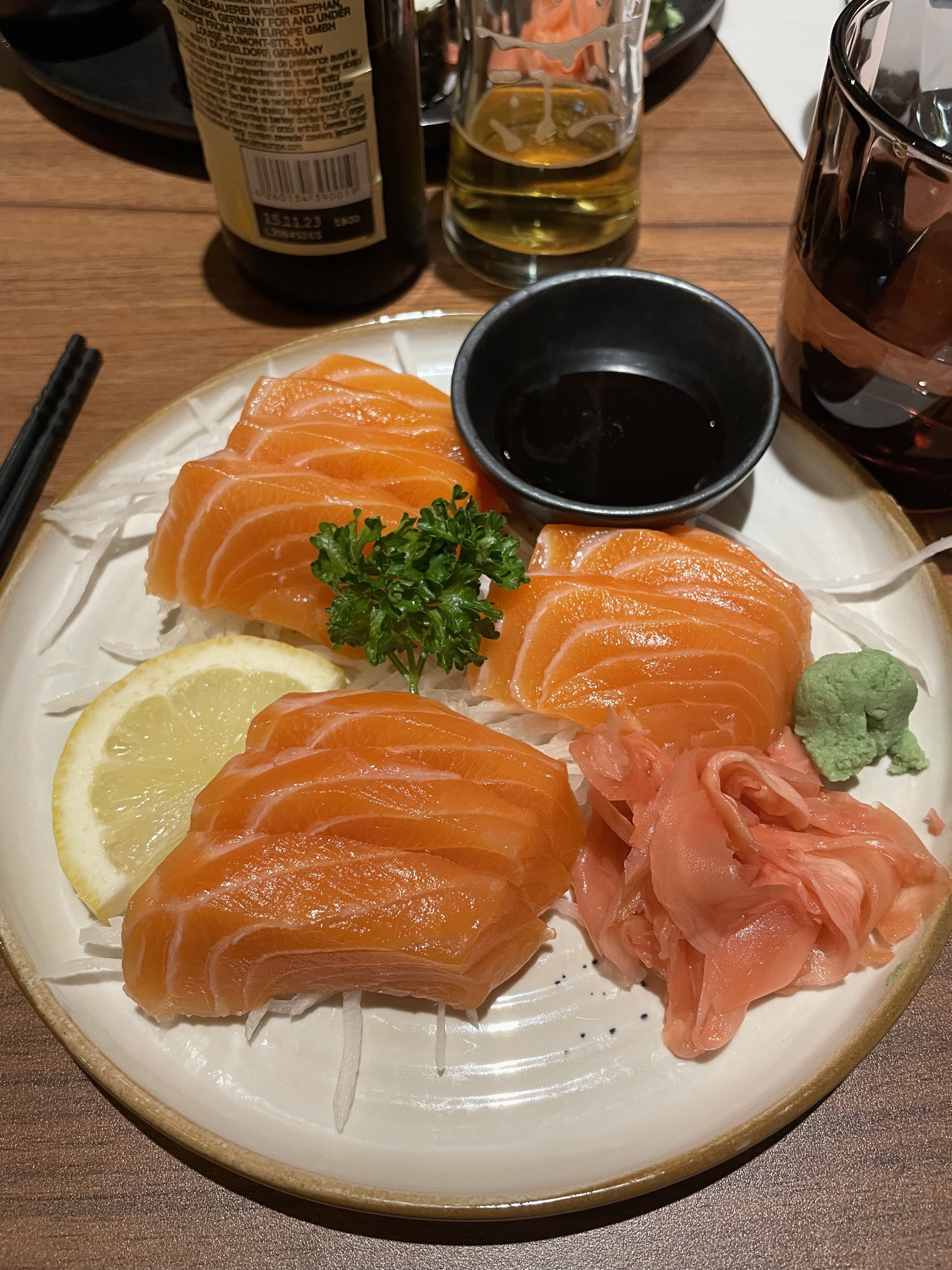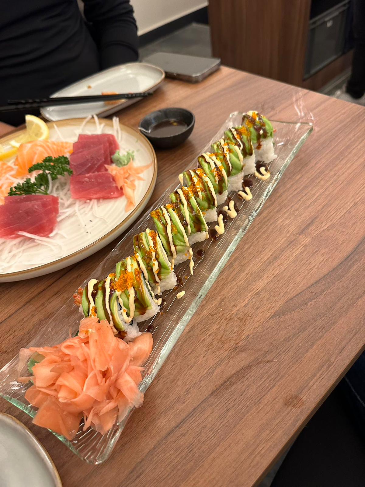Pour la nourriture, nous n'avons essayé que des sushis et des sashimis, c'était incroyablement savoureux, la nourriture était fraîche. Le personnel est agréable et sympathique. Le restaurant est propre. Nous y retournerons.
