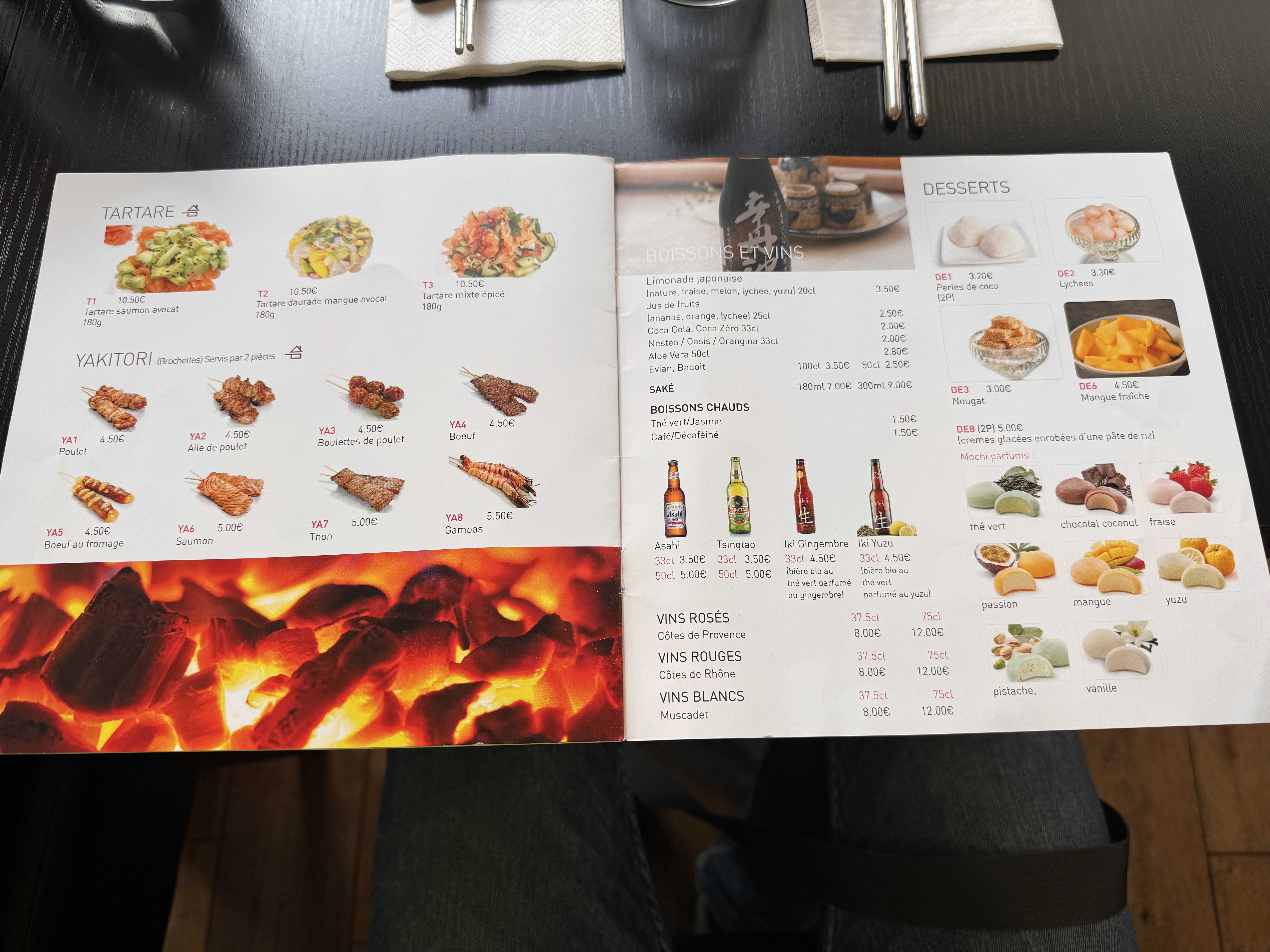 Bon accueil, qualité au rendez-vous ! Le saumon fond en bouche, choix des sauces soja (sucré/salée), brochettes appétissantes qui nous font regretter de ne pas en avoir pris plus. Seul bémol : le prix. Pour bien manger, prévoyez un budget de 20€ au moins 🙌