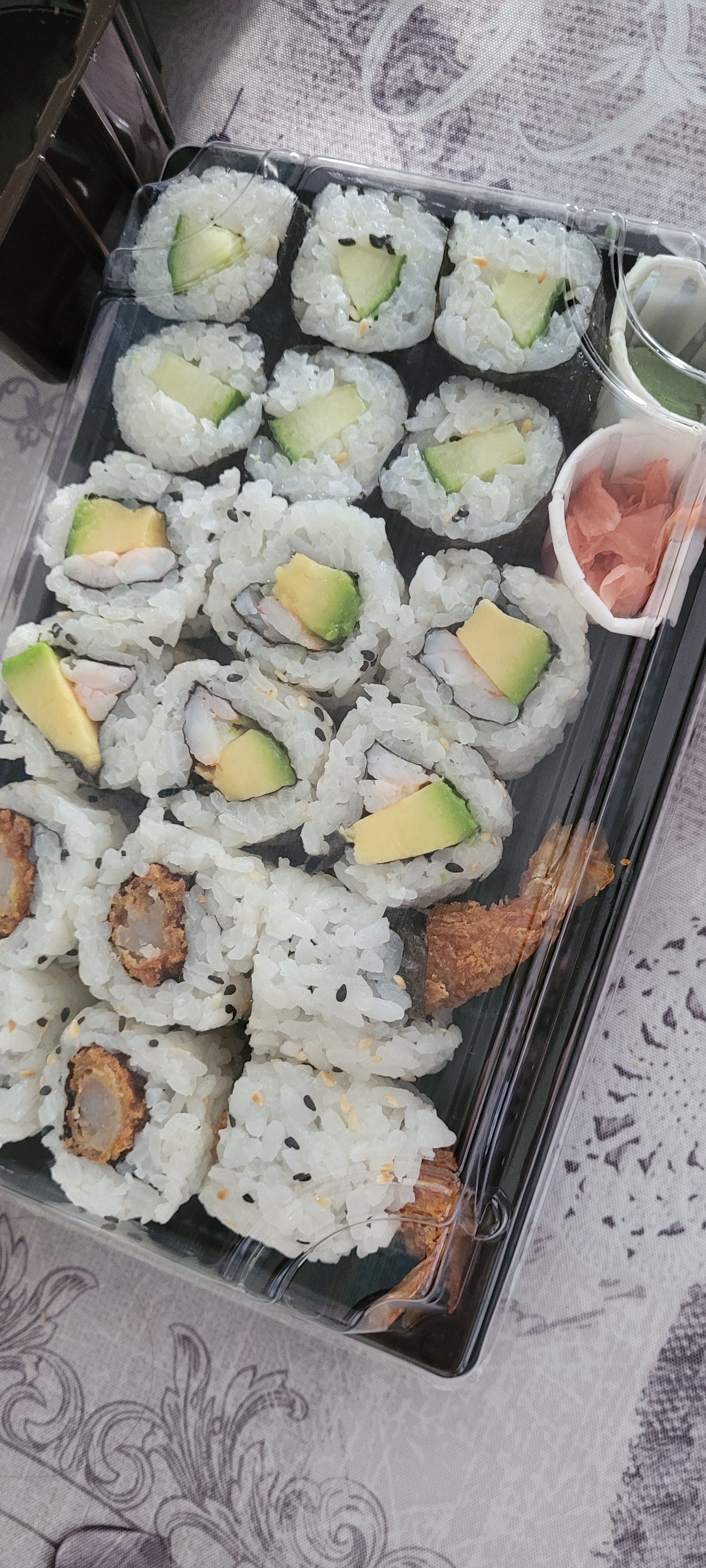 Pris sushi a emporté ,pas mal. Soupe miso nul et sans cuillères ,ils on oublié la sauce piquante petit détail...