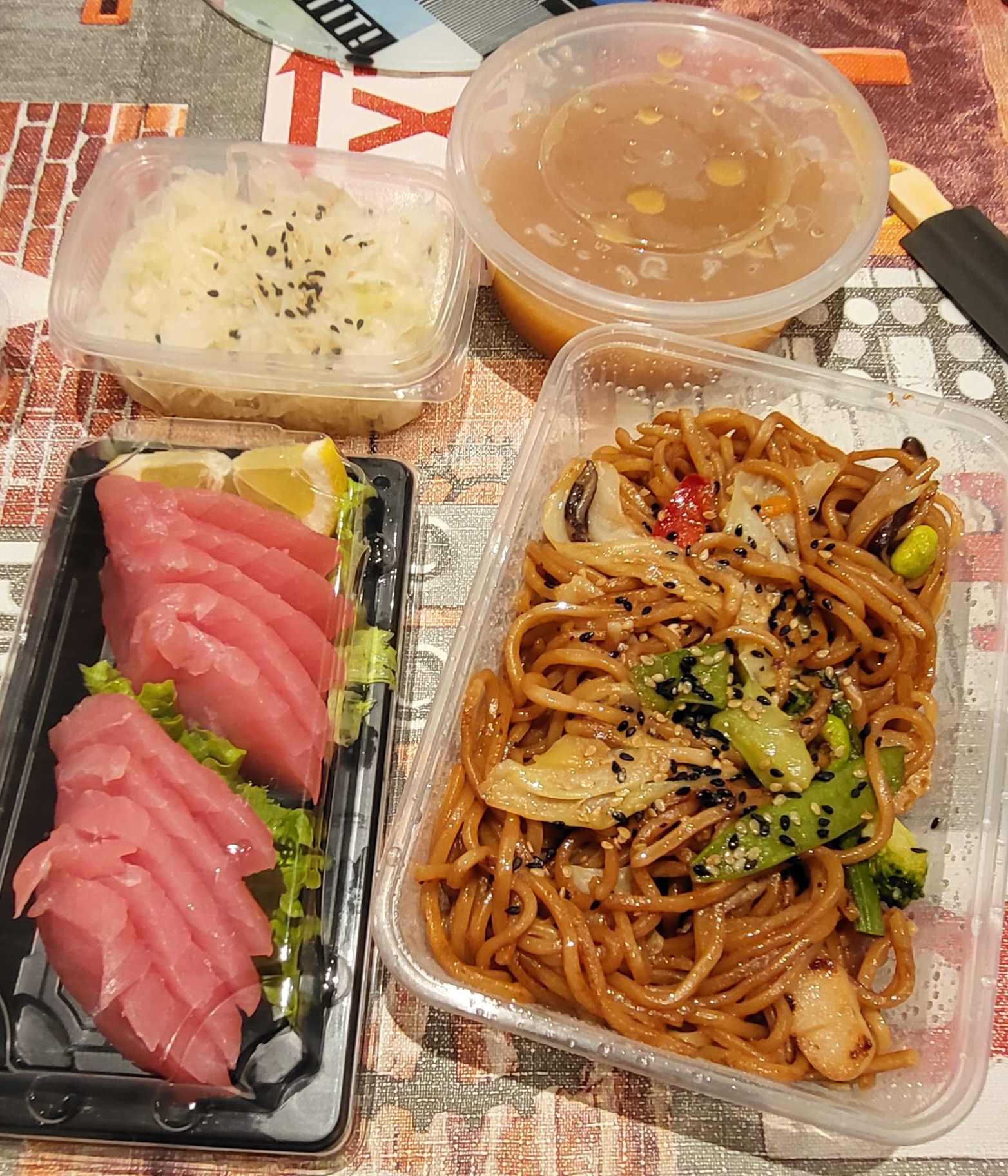 J’ai commandé se mardi 2 juillet 2019 un chirachi thon (celui ci rien à dire) et un chirachi assorti (pensant avoir une même quantité des 3poissons proposés) ERREUR ! Pour celui assorti j’ai été extrêmement déçu quand j’ai vu que j’avais 6 tranches de saumons, 2 de thon et UN MINI MORCEAU en lambeau de dorade !!! Si c’etait pour faire ça j’aurais pris le chirachi saumon... Je vais d’ailleurs poster la photo du plat après avoir mis côte à côte les 3sorre de poissons (sans avoir touché au plat bien évidement) que j’ai prise car pour le prix c’est juste pas cool du tout! Étant habituée au VRAI japonais celui ci n’est clairement pas à la hauteur, et trop cher pour la qualité des plats... mais le manque de concurrence ne les dessert cependant pas....
