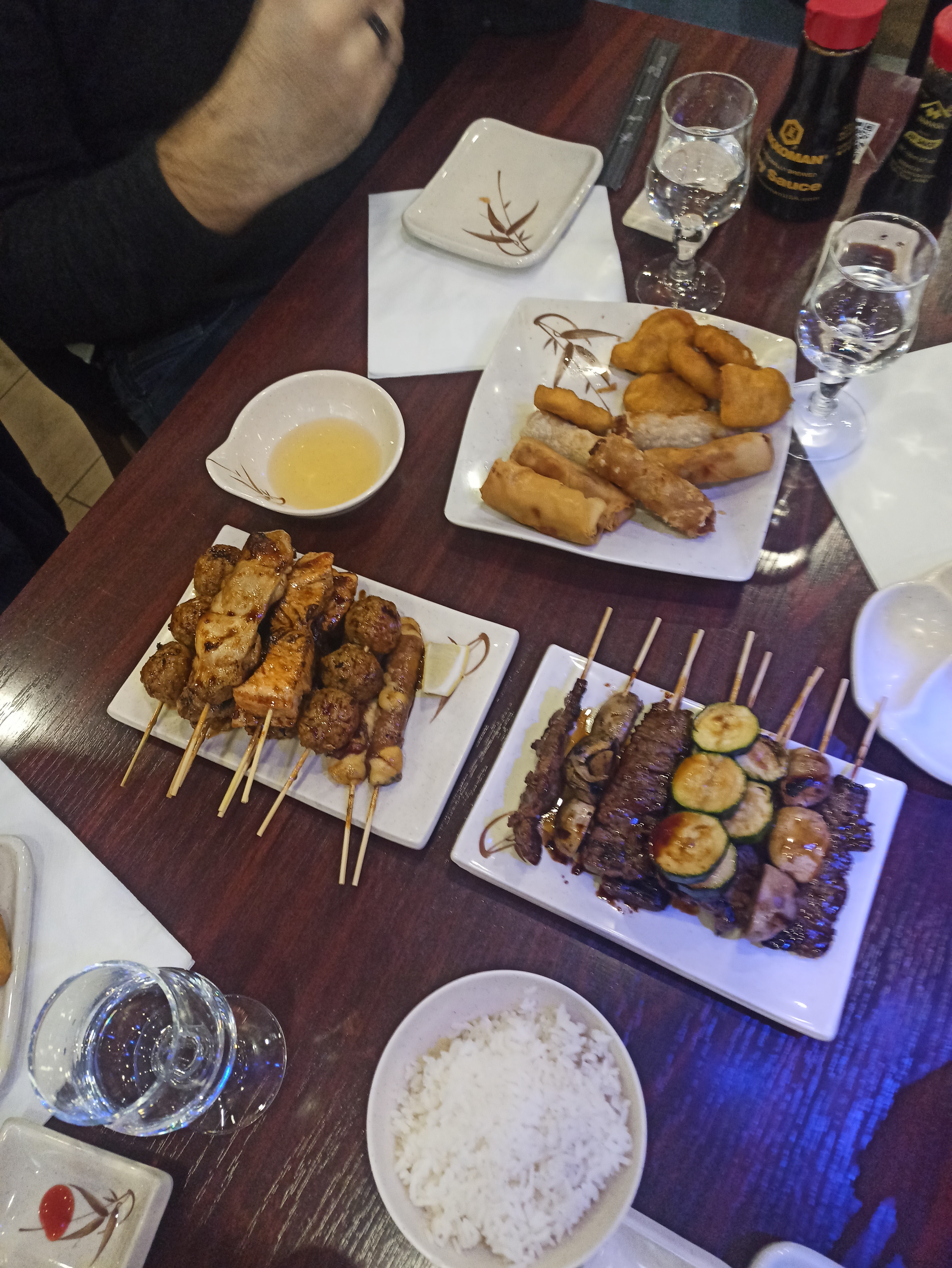Les spécialités japonaises sont une blague, sushis et makis avec un riz bas gamme, on constate clairement que dans la cuisine n'ont pas respecté la chaîne du froid. C'est littéralement manger du papier, poisson infecte, sec et salé bas gamme. Il y a que les brochettes. Veredict finale le resto n'est pas japonais, plutôt des chinois qui se croient dans les regles d'hygiène et sanitaires de l'Inde. Je ne conseille pas il y a beaucoup mieux et légèrement moins cher. Il y a un véritable resto japonais dans le coin.