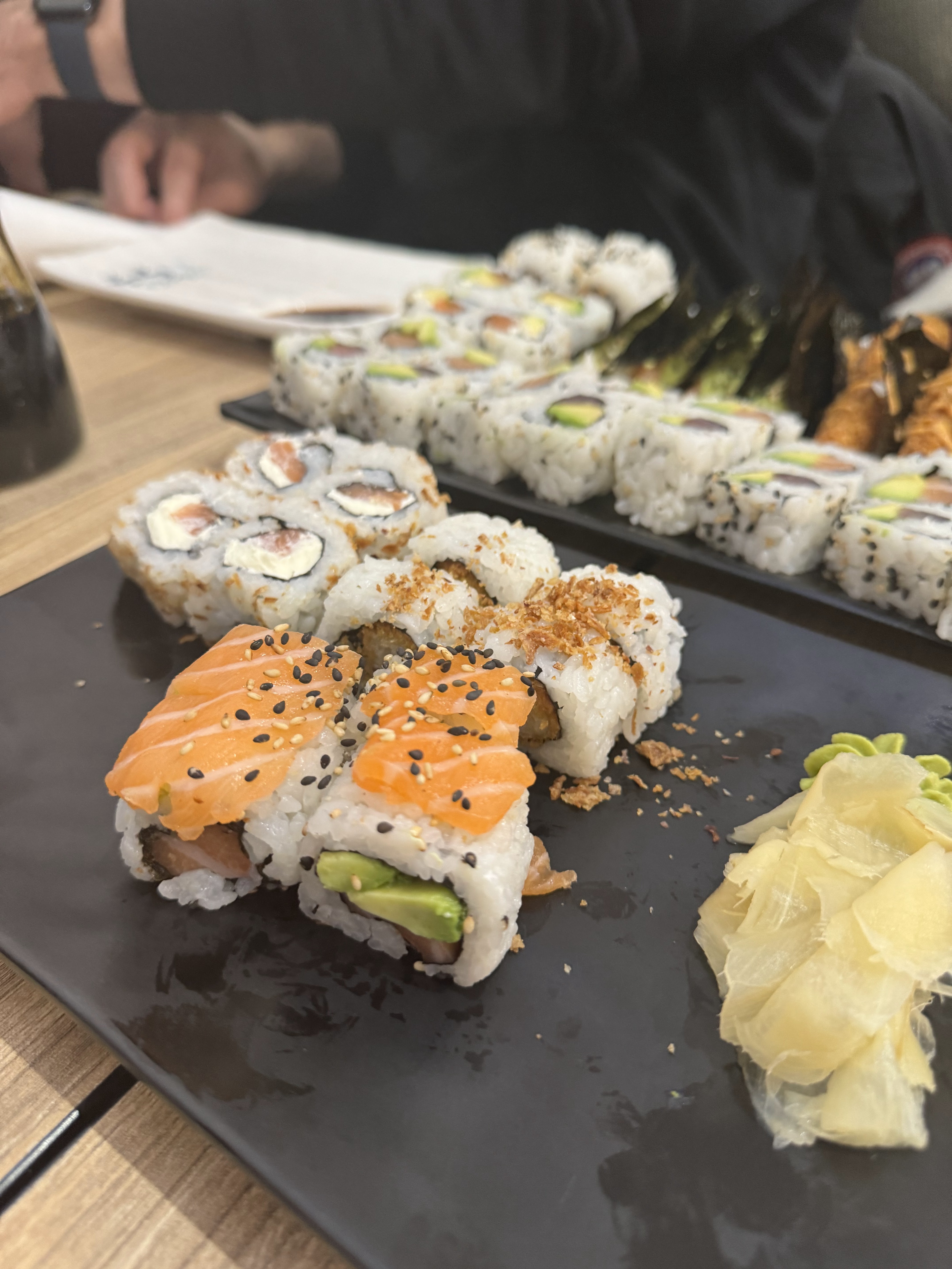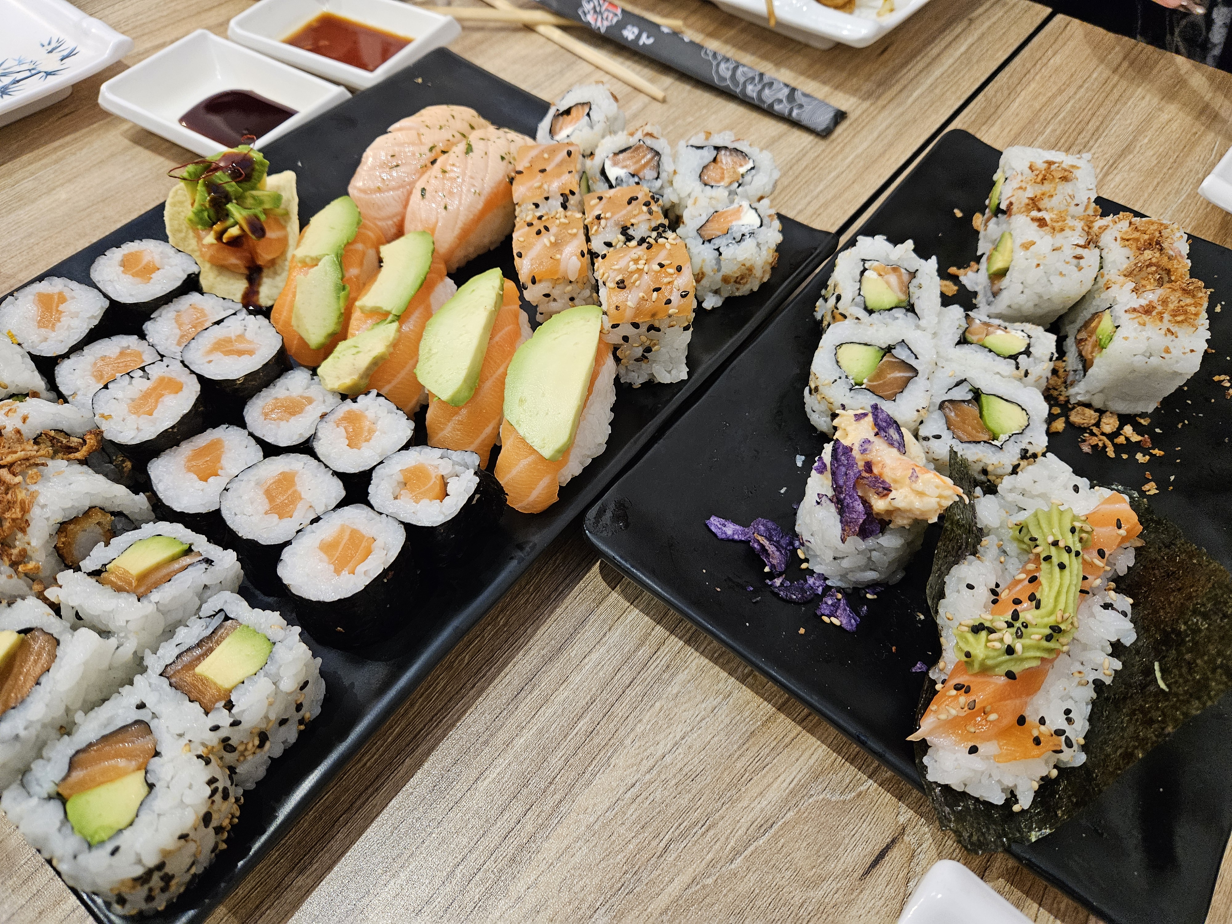 La prise de commande sur tablette très pratique et on y mange vraiment bien avec leur formule à volonté avec de bons produits. Seul bémol le service : un groupe de 10 arrive et pas de tables suffisantes du coup les serveuses ont pris deux tables sur le côté pour les placer à notre droite et ont eu le toupet de décaler notre table alors qu'on avalait nos sushis sans nous le demander au préalable un vrai manque de tact et de politesse...