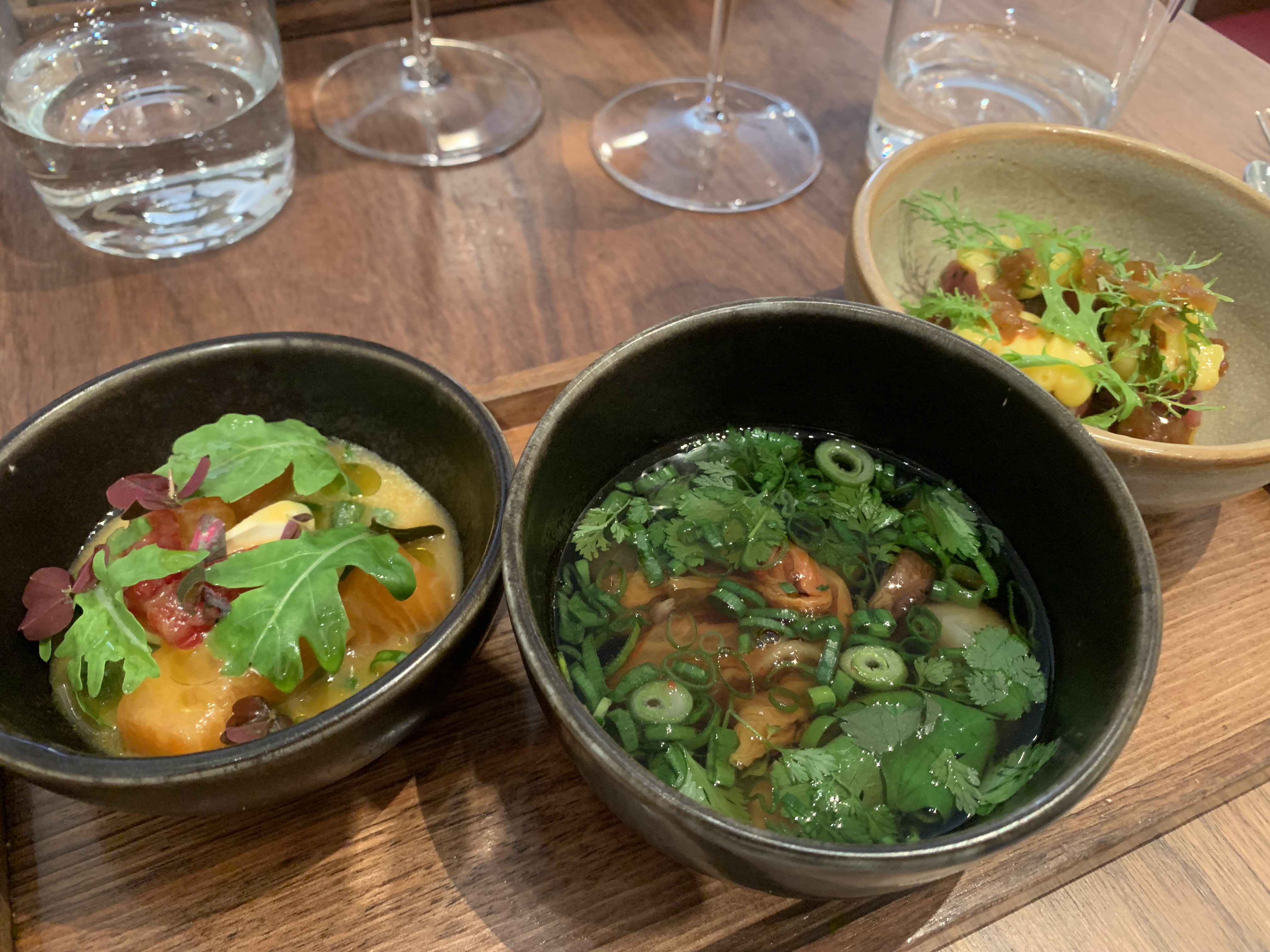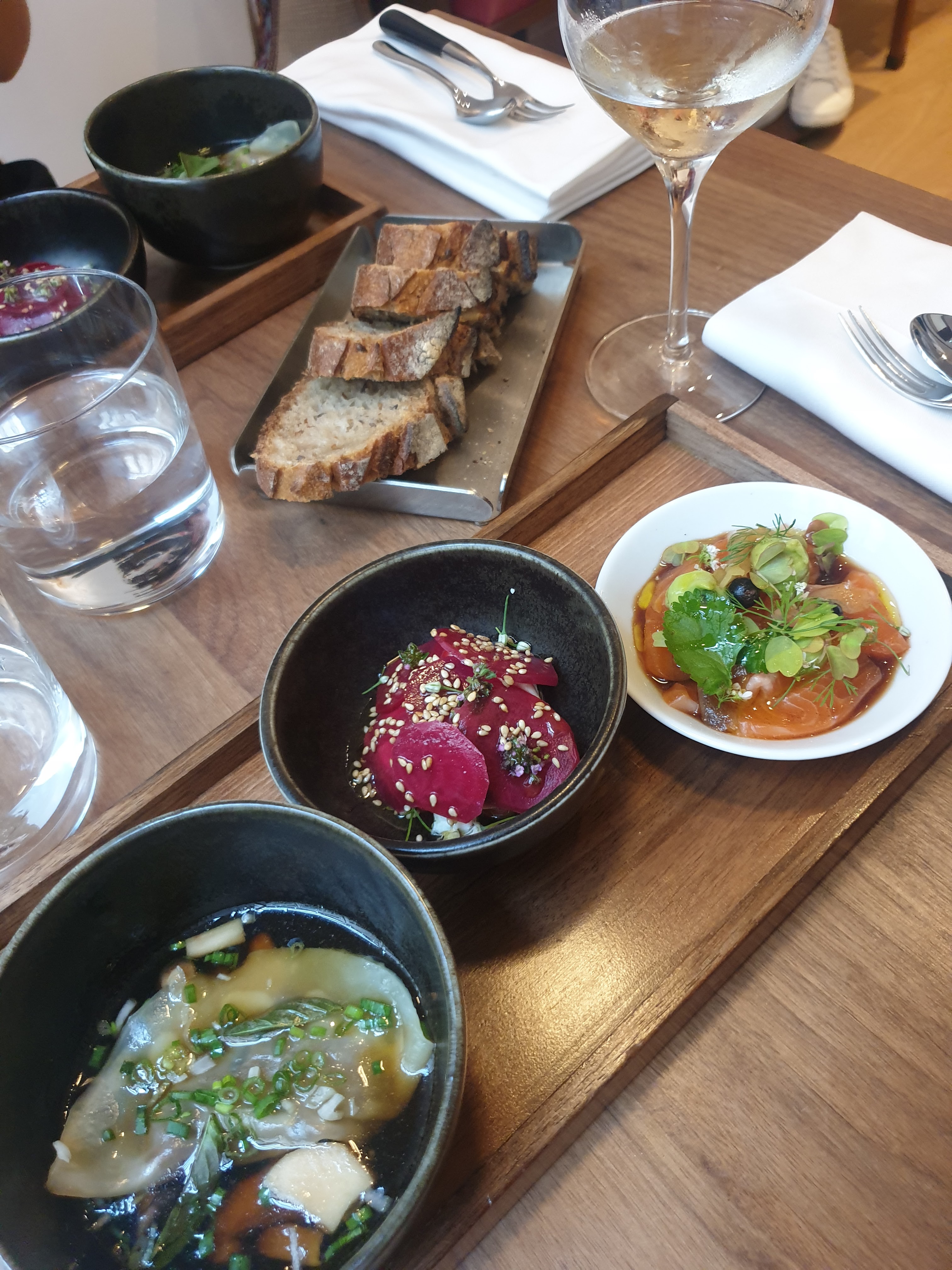 Belle adresse! Carte assez réduite , tout donne très très envie donc dur de choisir. Touche asiatique ici et là. 2 salles avec une déco épurée mais chaleureuse. Je pense que nous sommes tombées un jour d'effectif réduit donc le service était un peu lent mais ça a permis de profiter de la compagnie et du moment. Je reviendrai définitivement goûter le reste de la carte.