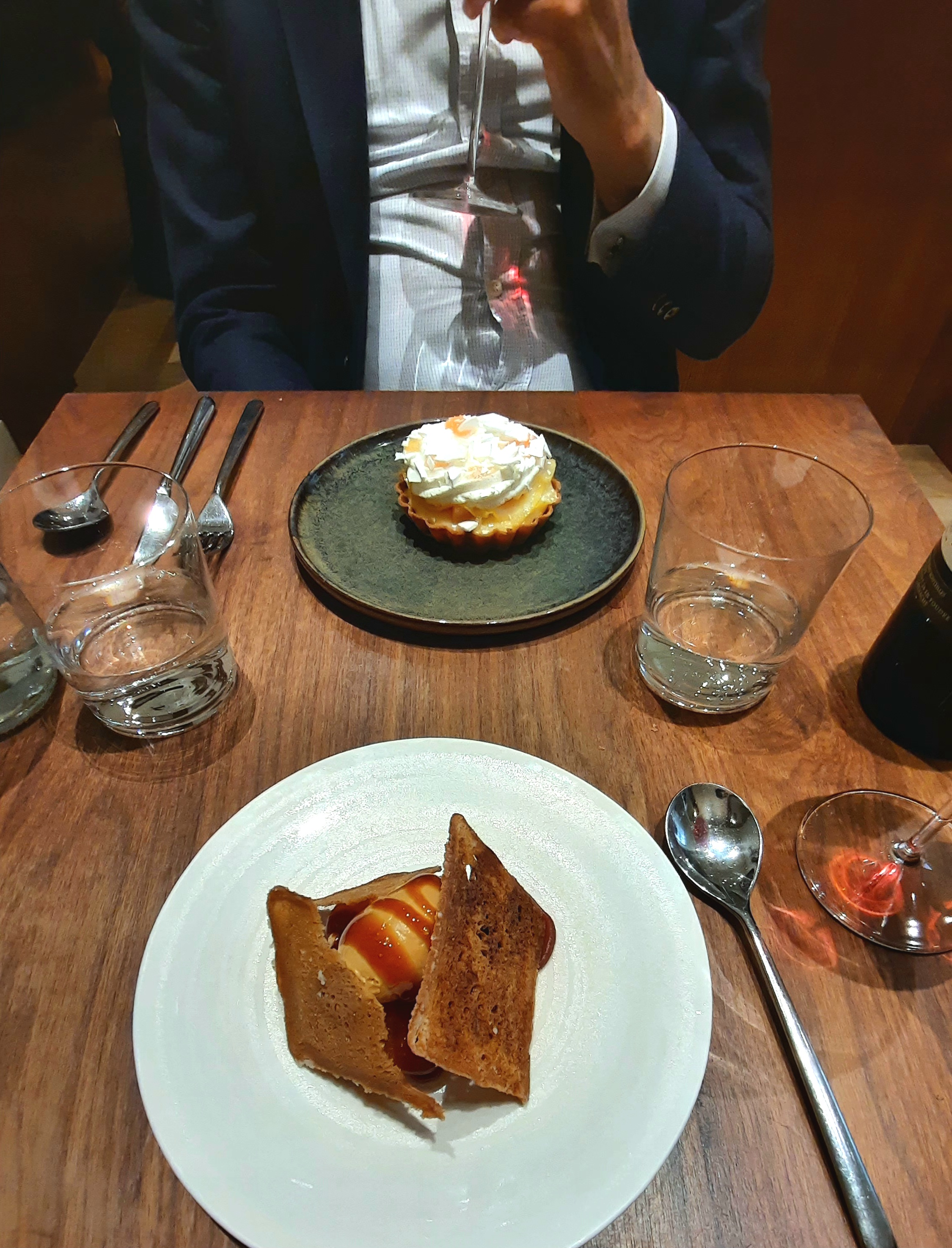 Et au fond de la salle, presque feutrée accompagné des passionnés et compétents nous sommes brusqués dans nos idées de ce que le bon peut être. Et cette cuisine si proche de la pointure amène un vent qui rappel l’apogée de la bistronomie des années 2000 ou qui fait écho à la bande aux trois gros des années 60. Bravo au sommelier et à Adrien.