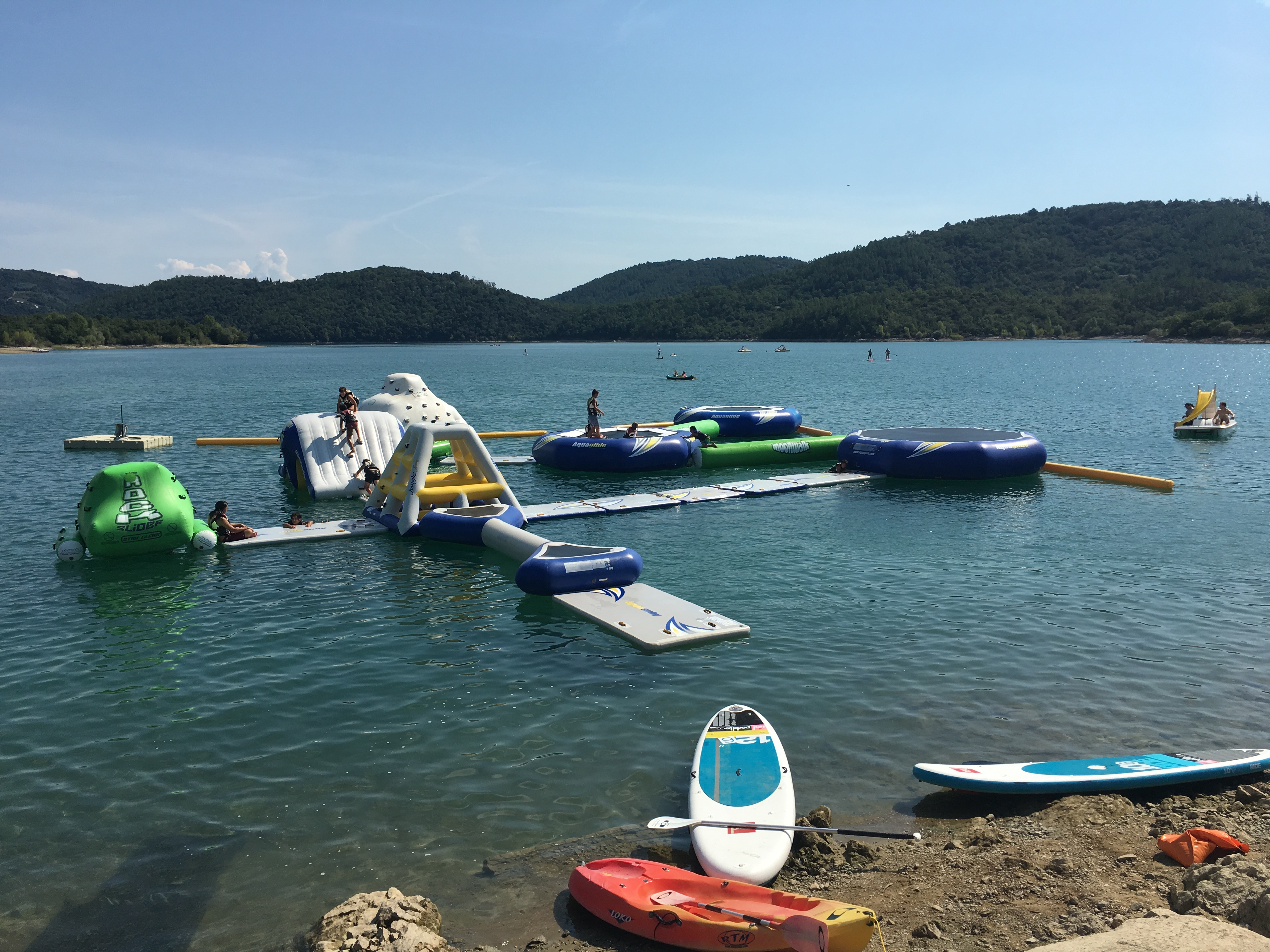 Tres beau lac avec pleins d activités pour les enfants comme pour les parents , y a des pedalos, canoés, paddles , 1 aire de jeux gonflable sur l eau