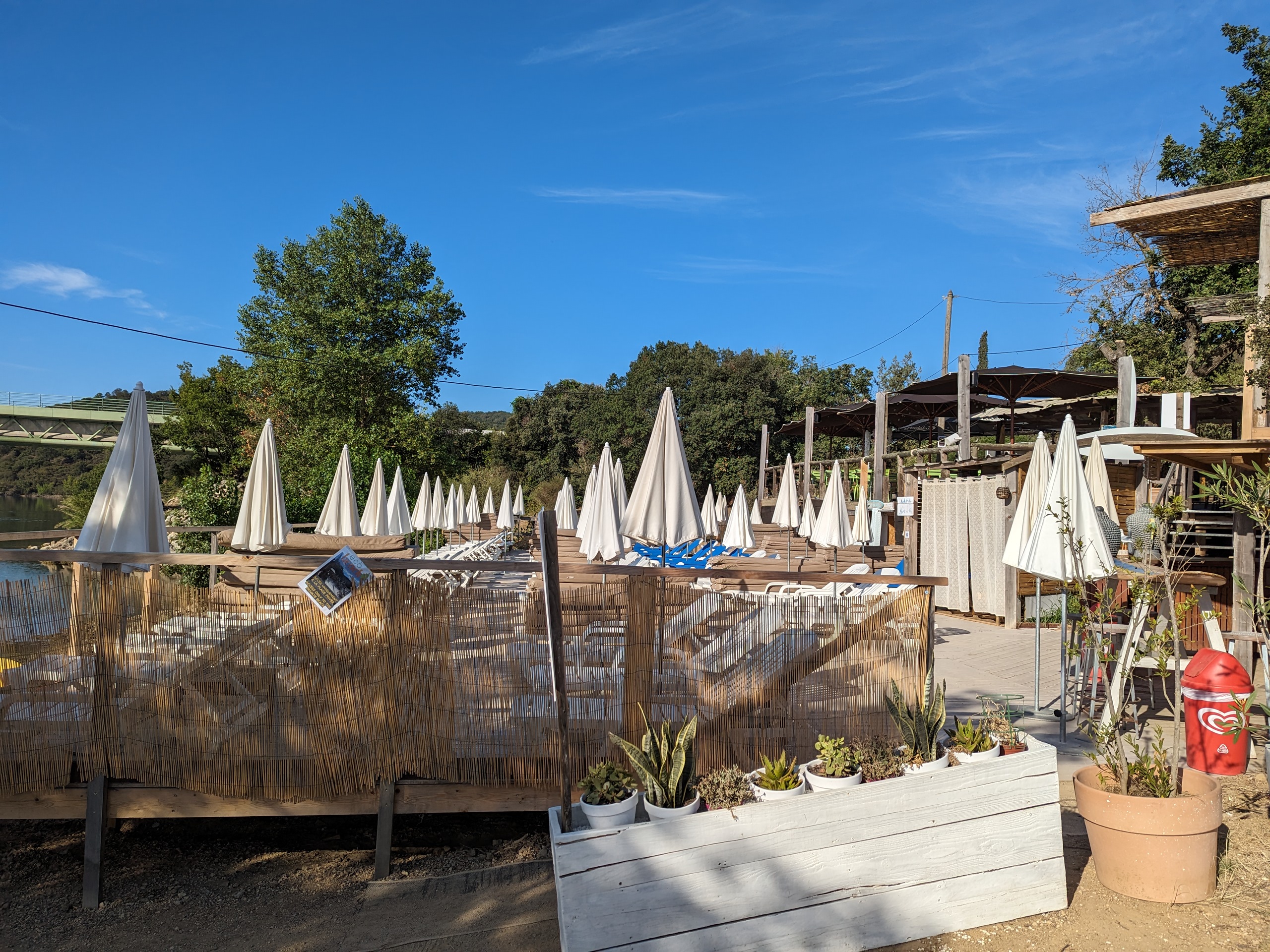 Établissement bien placé en bordure du lac de St cassien avec boissons petite alimentation , jeu pour les enfants , Pédalo petite embarcation etc.. petit bémol pas beaucoup de place pour stationner , beaucoup de poussière boissons un peu chères , énormément de monde . En saison peu de place pour mettre sa serviette à moins de louer un matelas sur la terrasse