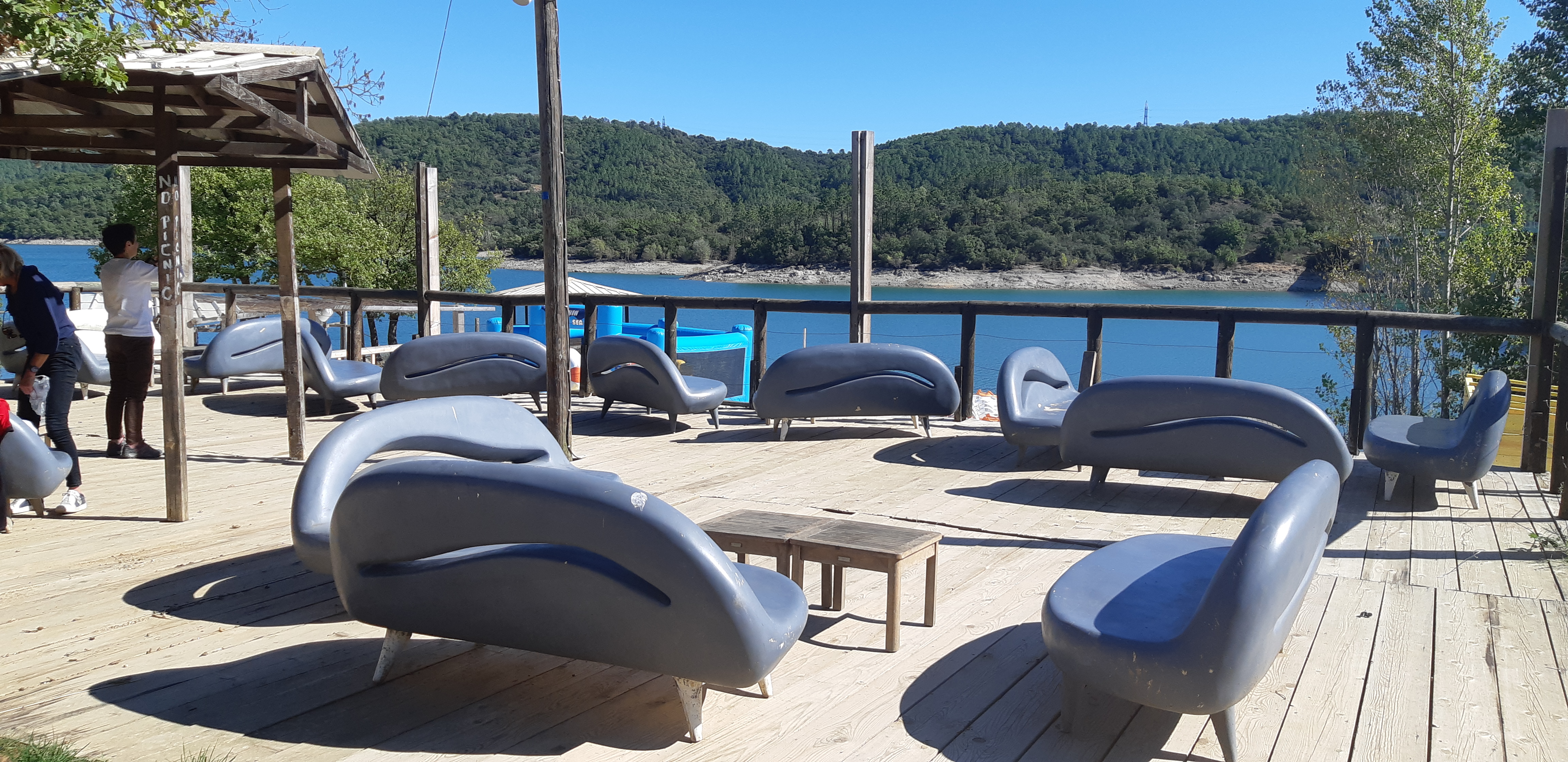 Endroit merveilleux ! Repos assuré. Eau claire, bonne température et transparente. Paysage magnifique. Possibilité de faire du pédalos. Il y a des structures gonflables géantes avec plongeoir de 4 mètres environ. Le top pour faire des sauts dans l'eau 💦. Certains sautent depuis le pont !! 🔞. A ne pas faire !!! 😟 Prévoir pique nique si vous souhaitez déjeuner en famille. C'est vraiment génial. Attention à la sortie car le péage pour rentrer sur Nice est après le second rond-point et non le premier !