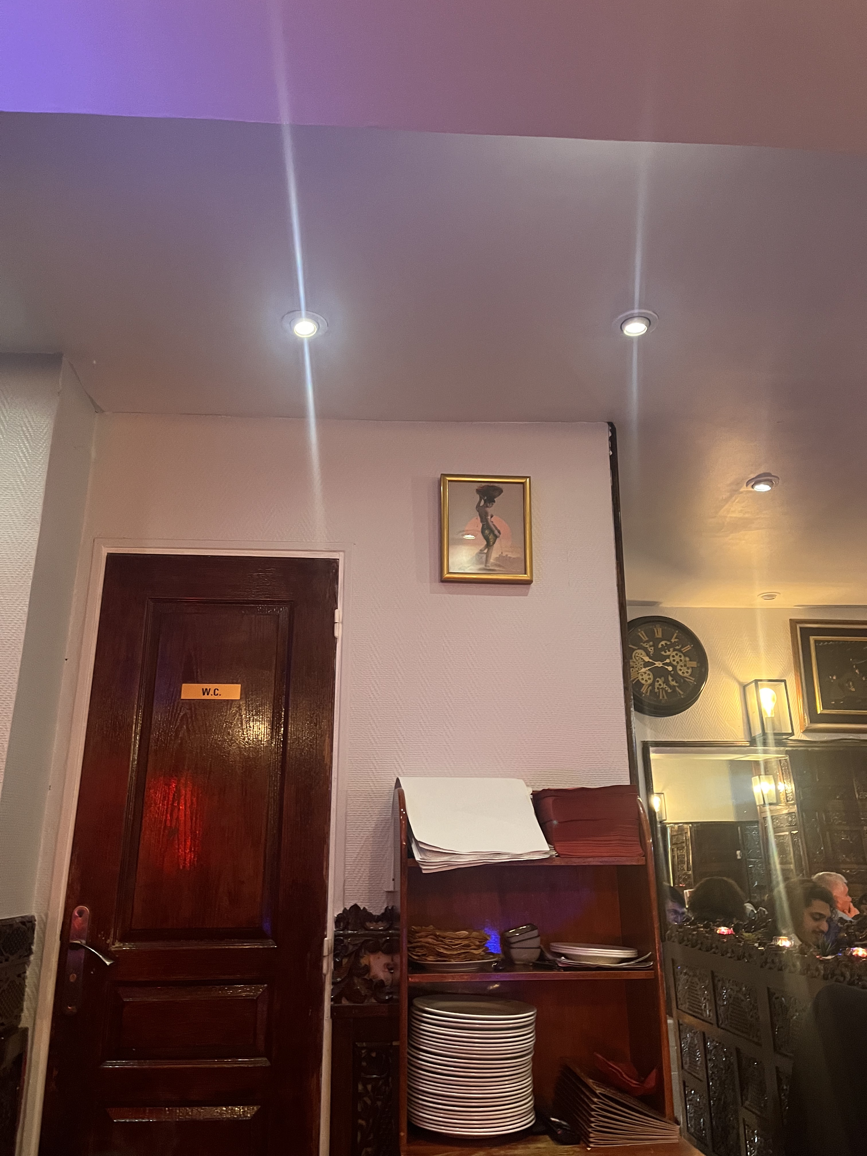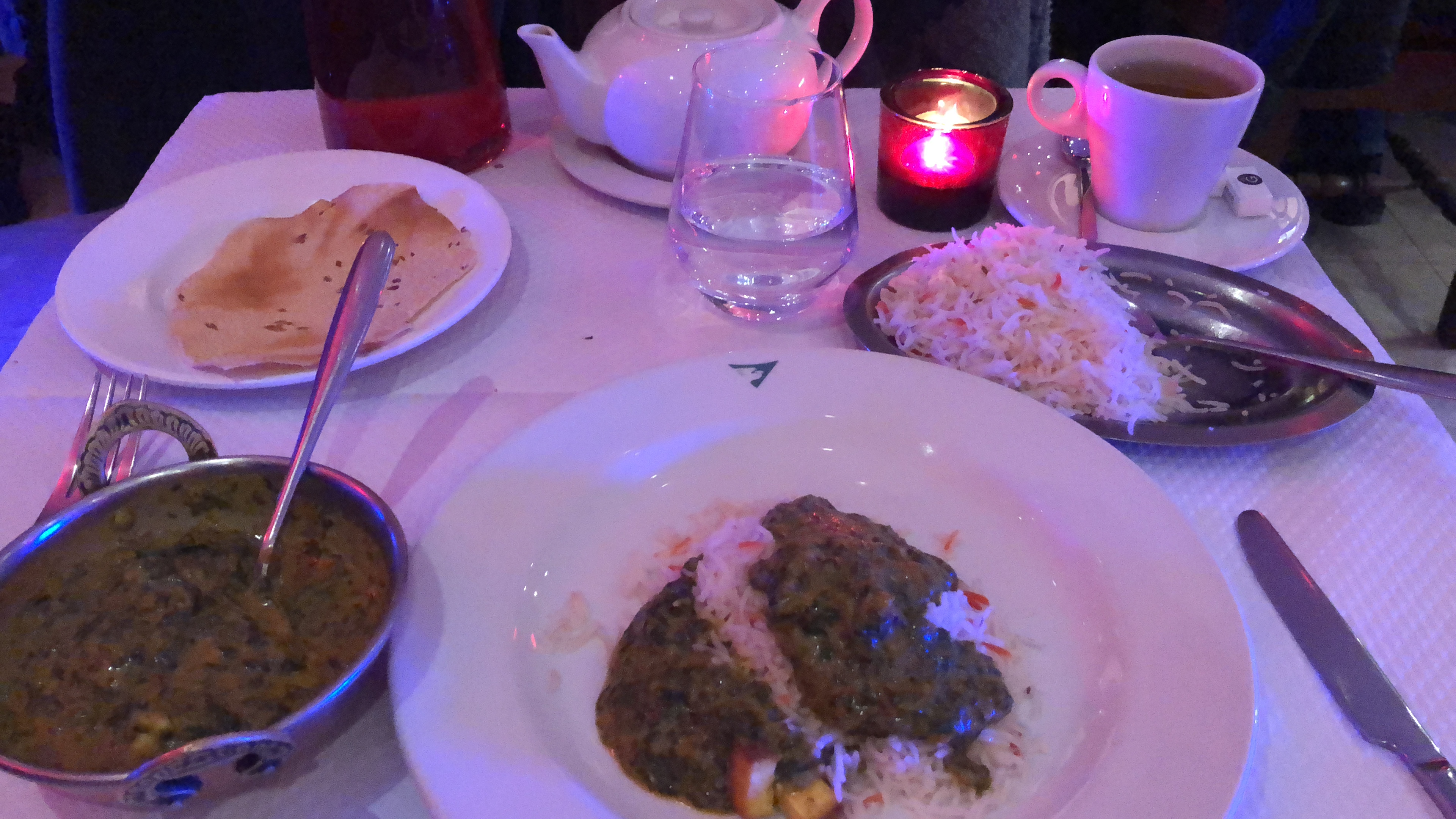 Nous étions un groupe de 15 personnes, nous étions dans la salle du bas, ambiance sympathique! Service rapide. En revanche les nappes du bas étaient pleines de tâches .. il faudrait penser à les nettoyer. Mention spéciale pour le cheese naan.