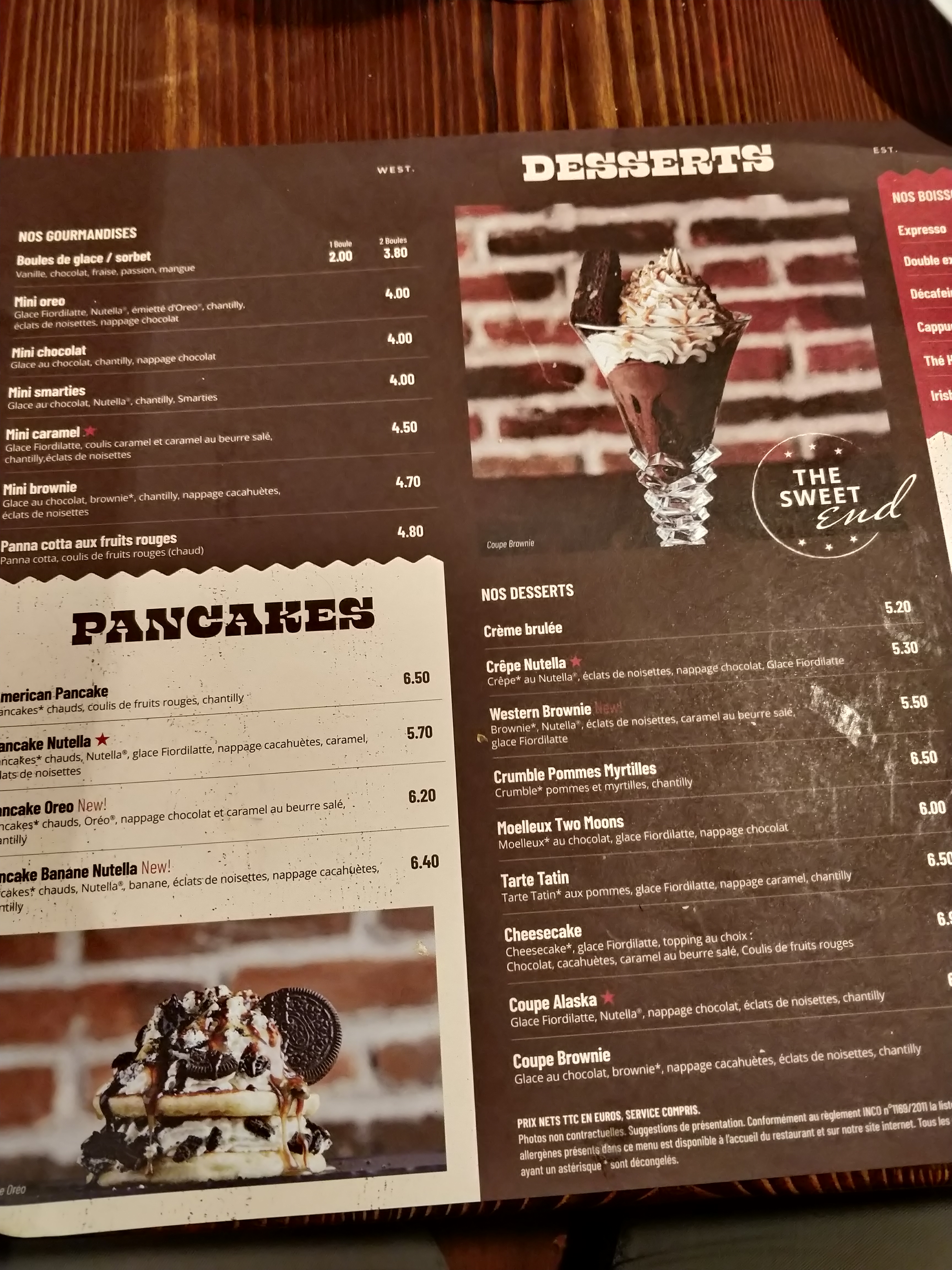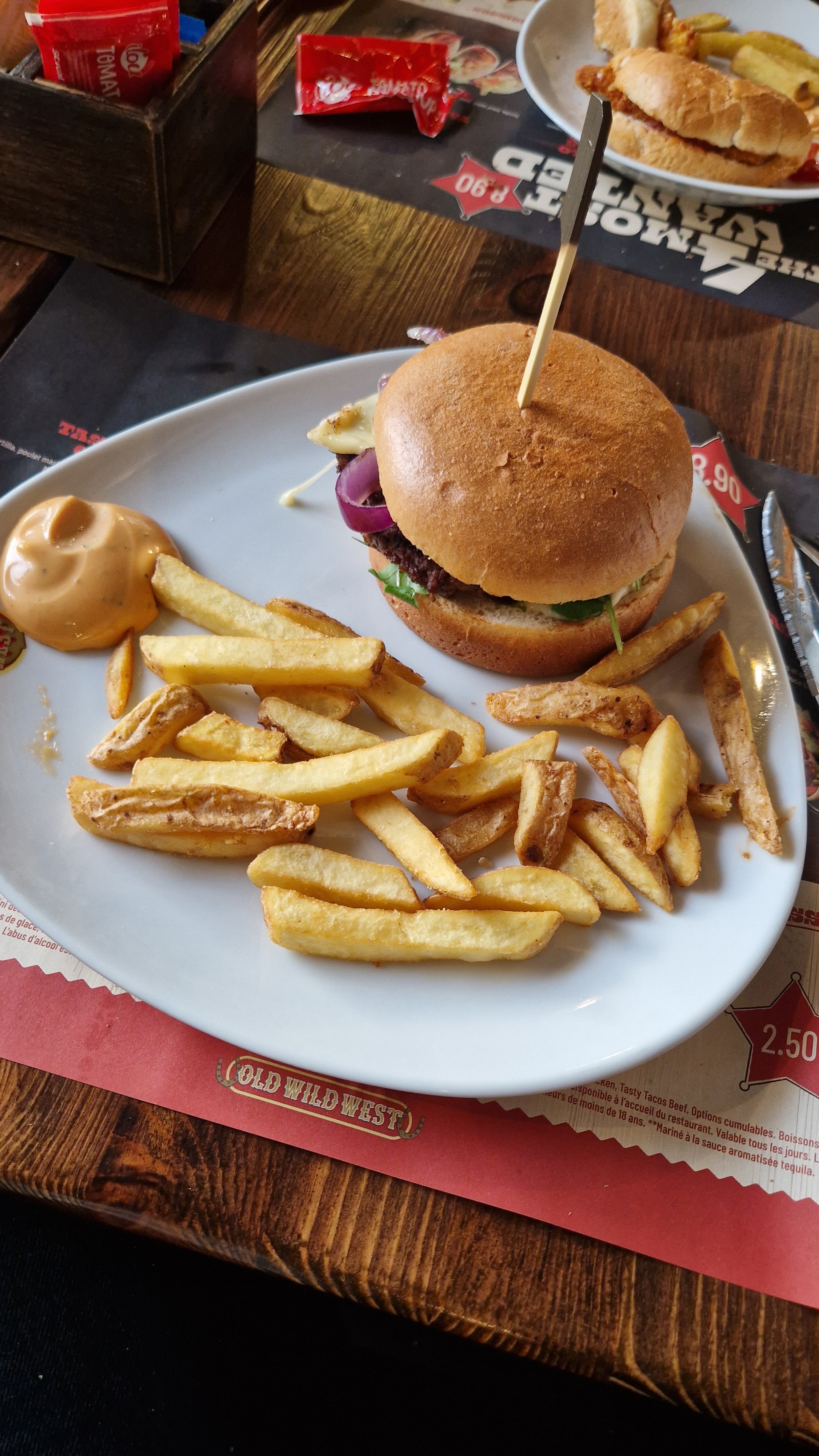 Resto ambiance far west, saloon. On y mange ce à quoi on s attends, mais attention...on est sur de la qualité, la viande est très bonne, les burgers ne baignent pas dans le gras et ILS SONT BONS. Ça ne veut pas révolutionner le burger mais ils sont de qualité et bien sûr c est copieux, Ils y a aussi des viandes etc...les prix raisonnables, moyenne 17 euros double burgers les viandes un peu plus