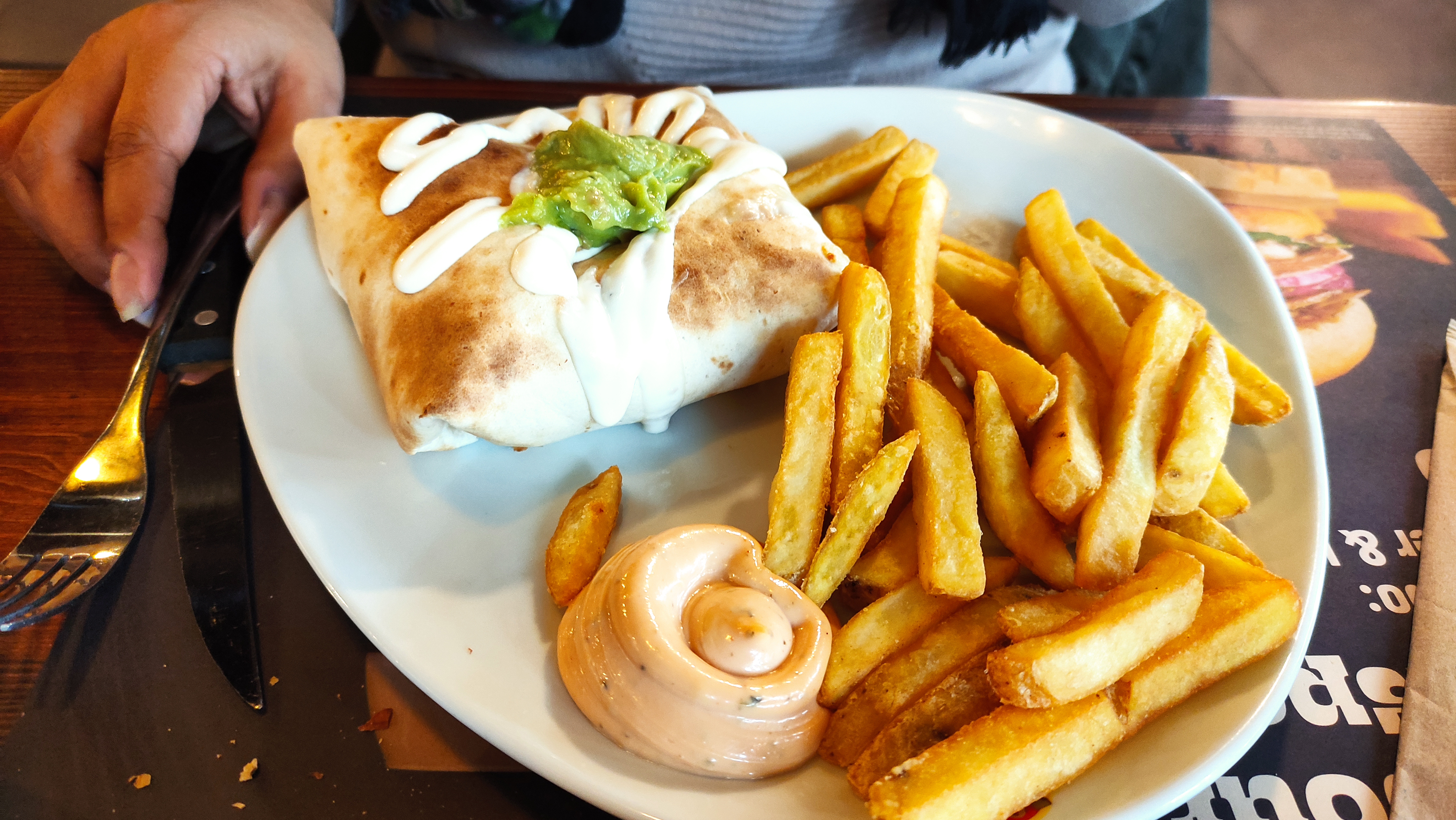 L’espace était charmant mais le manger était horrible, une chips en guise de tacos LOL et un burritos à la place d’un quesadilla MDR à revoir, sauce bonne mais bourrative quand à côté nous avions un plat pas bon