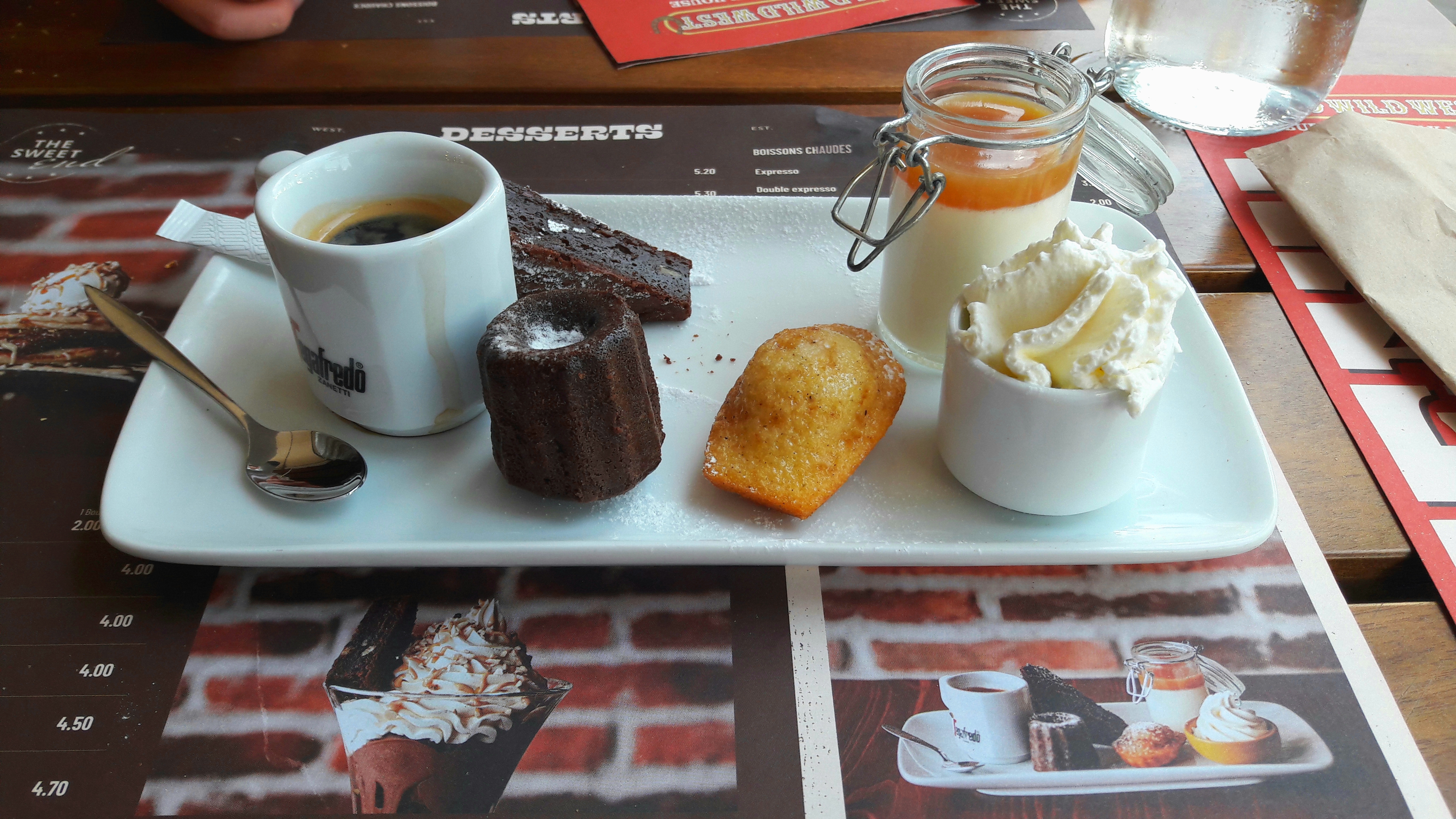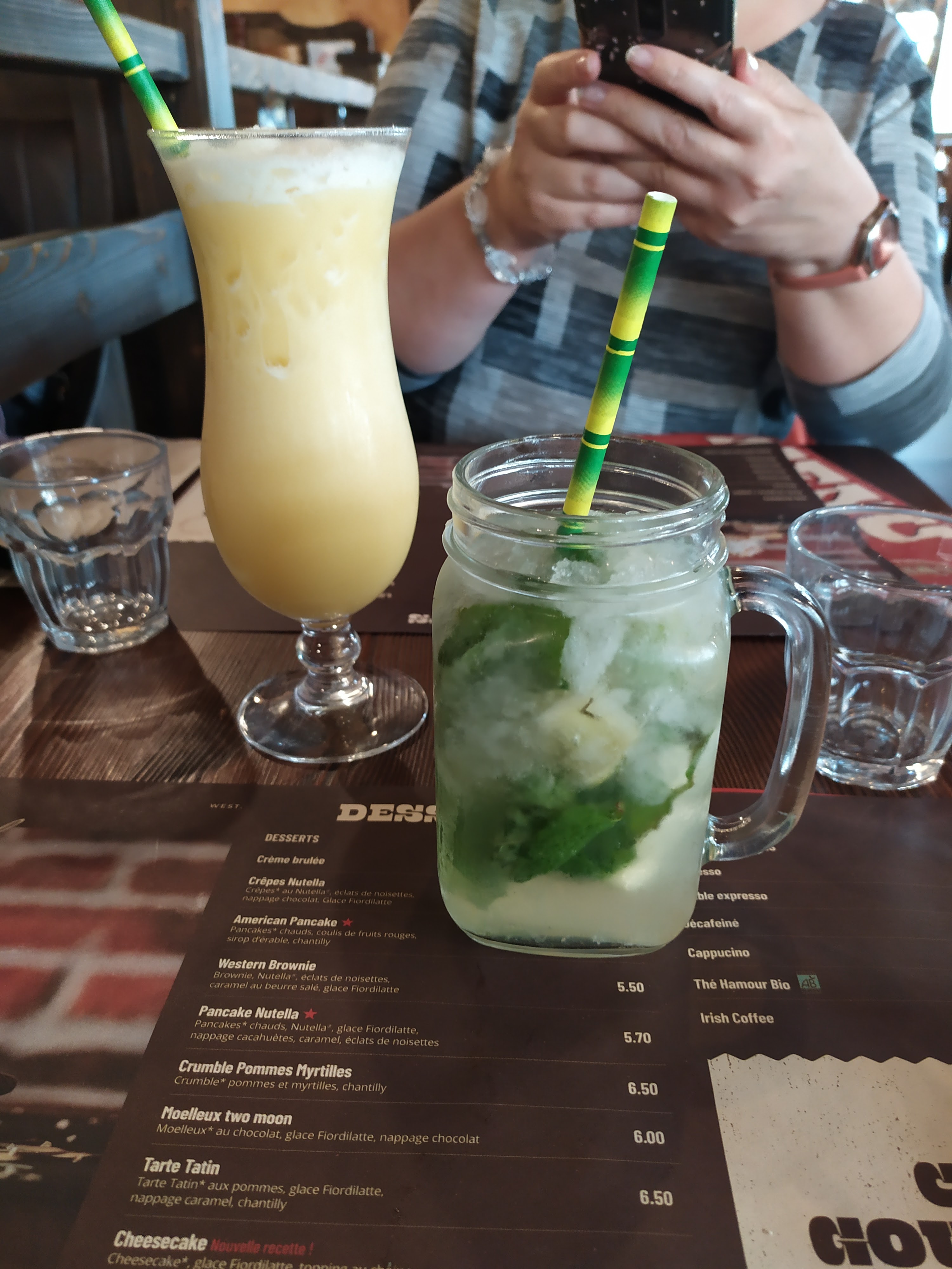 Ambiance sympa, style western. Le concept est pas mal, avec du choix sur la carte. Les plats étaient copieux, dans le burger la viande était cuite comme demandée par contre le pain était pas top type industriel genre celui que tu achètes en supermarché. Les quesadillas étaient très bonnes. Mais alors le service.... Franchement pas génial. Déjà a l'accueil c'est à peine si on a eu droit à un bonjour. Ensuite on nous a servi les cocktails et les plats quasiment en même temps. Après avoir débarrassé les plats on a cru qu'on nous avait oublié . On a fini par venir prendre notre commande de desserts et cafés, sauf qu'on nous a servi les cafés avant les desserts qui ont bien mis un quart d'heure à arriver. Du coup nos cafés étaient froids quand on les a bu. Bref on ré essaiera un soir, le service sera peut être meilleur ou pas.....