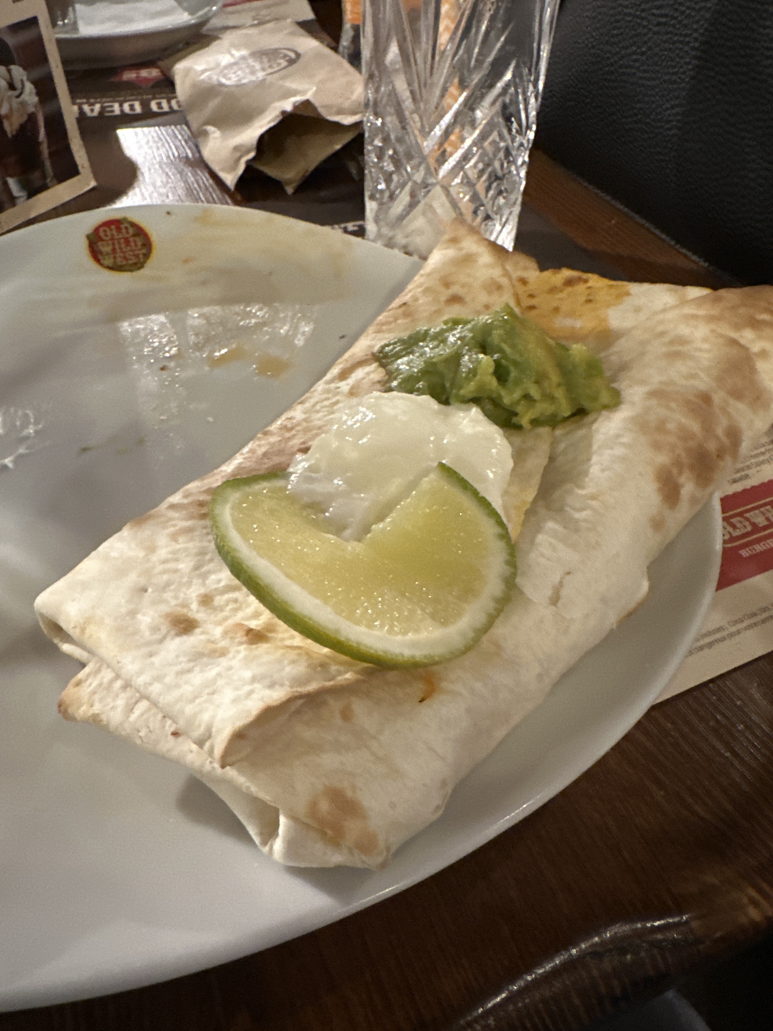 Restaurant convivial et accessible. Nous nous sommes rendues pour la première fois dans ce restaurant vers 13h. Pas d’attente, des cacahuètes 🥜 entières en guide d’apéritif l’idée est très sympa! Le personnel est agréable, souriant et arrangeant, on pardonne donc les petites lenteurs ou désorganisations en heure de pointe un samedi midi! Nous avons toutes pris des plats différents, du premier au dernier : - quesadilla - fajitas San Jose - burger double - Cheyenne chicken