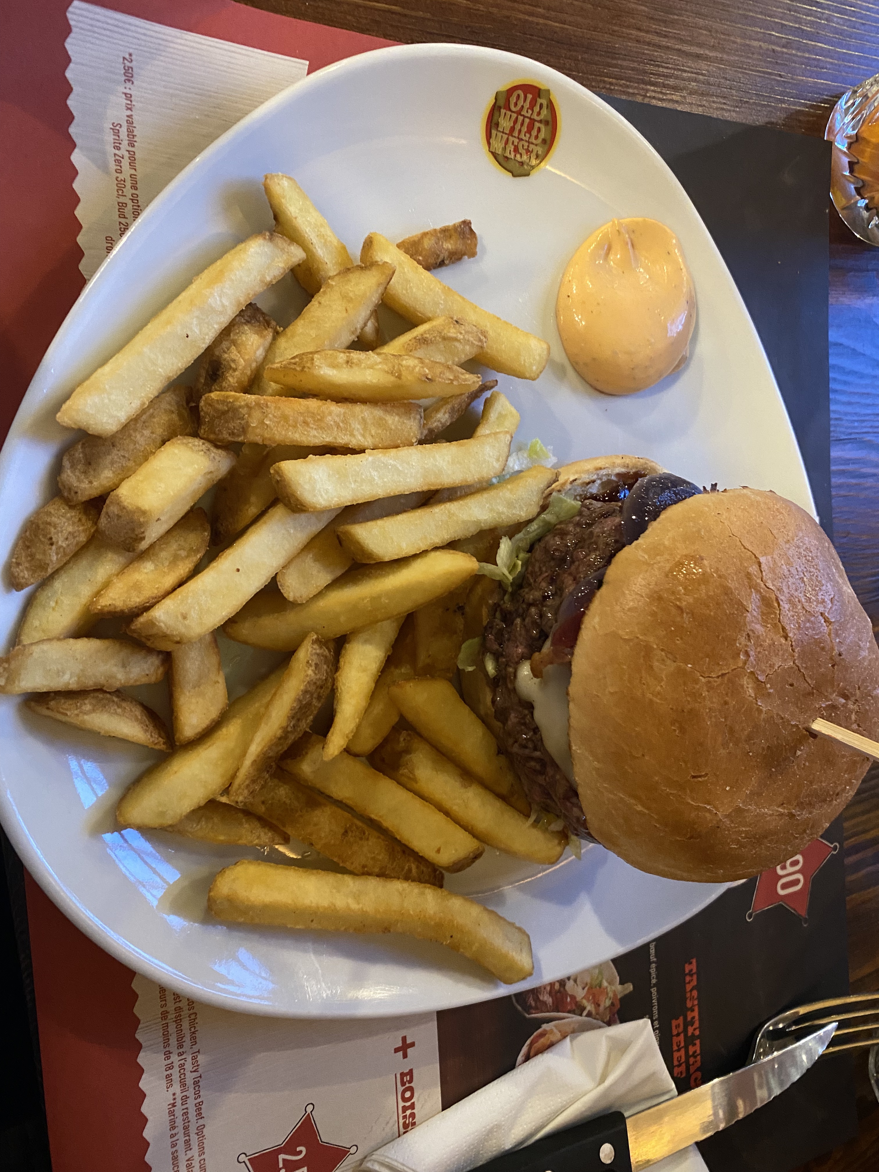 Burger correct, frites très bonnes. Cadre très sympathique. Attention aux bouteilles d'eau, trop de calcaire, ça se lave les carafes!!