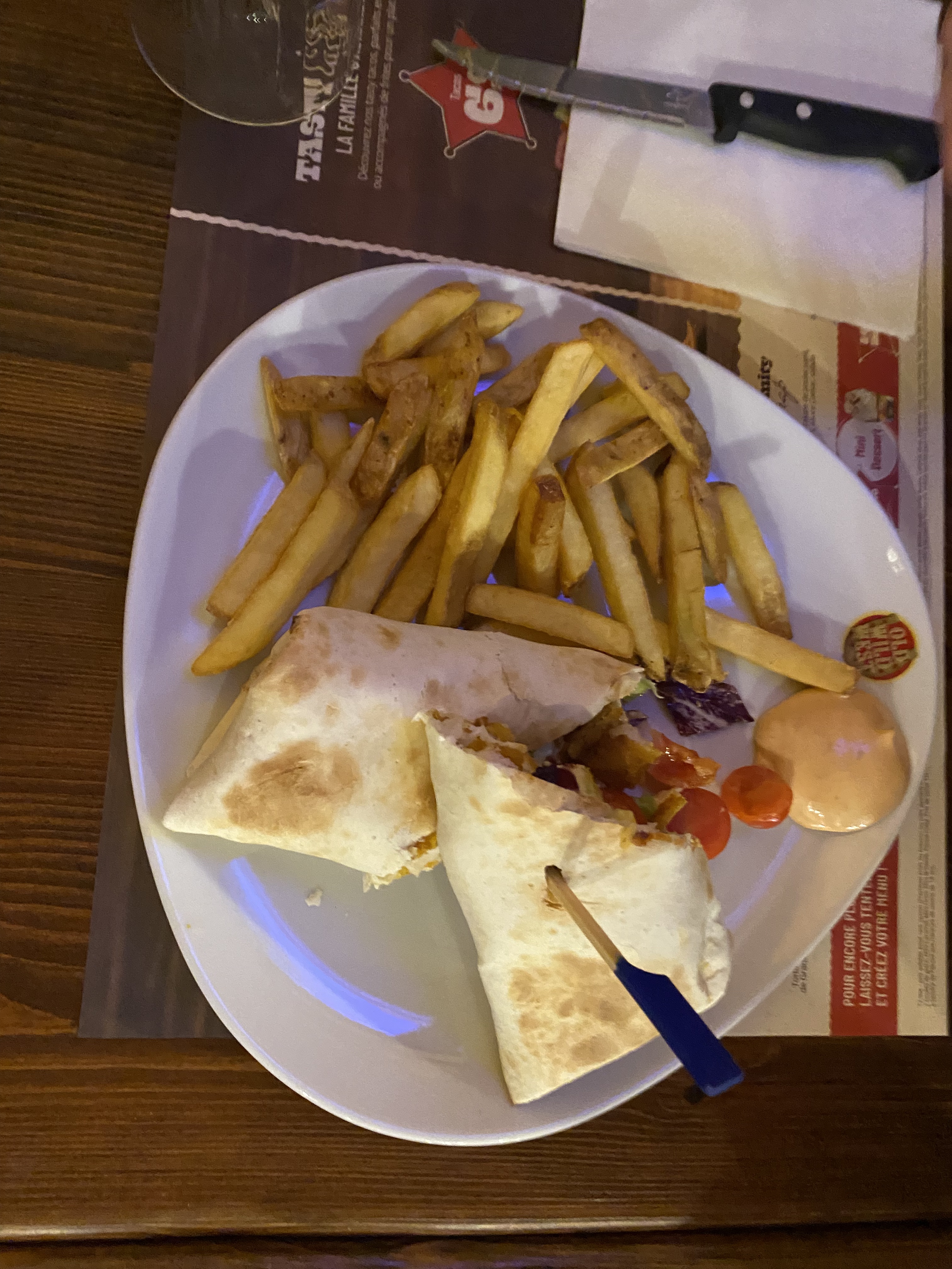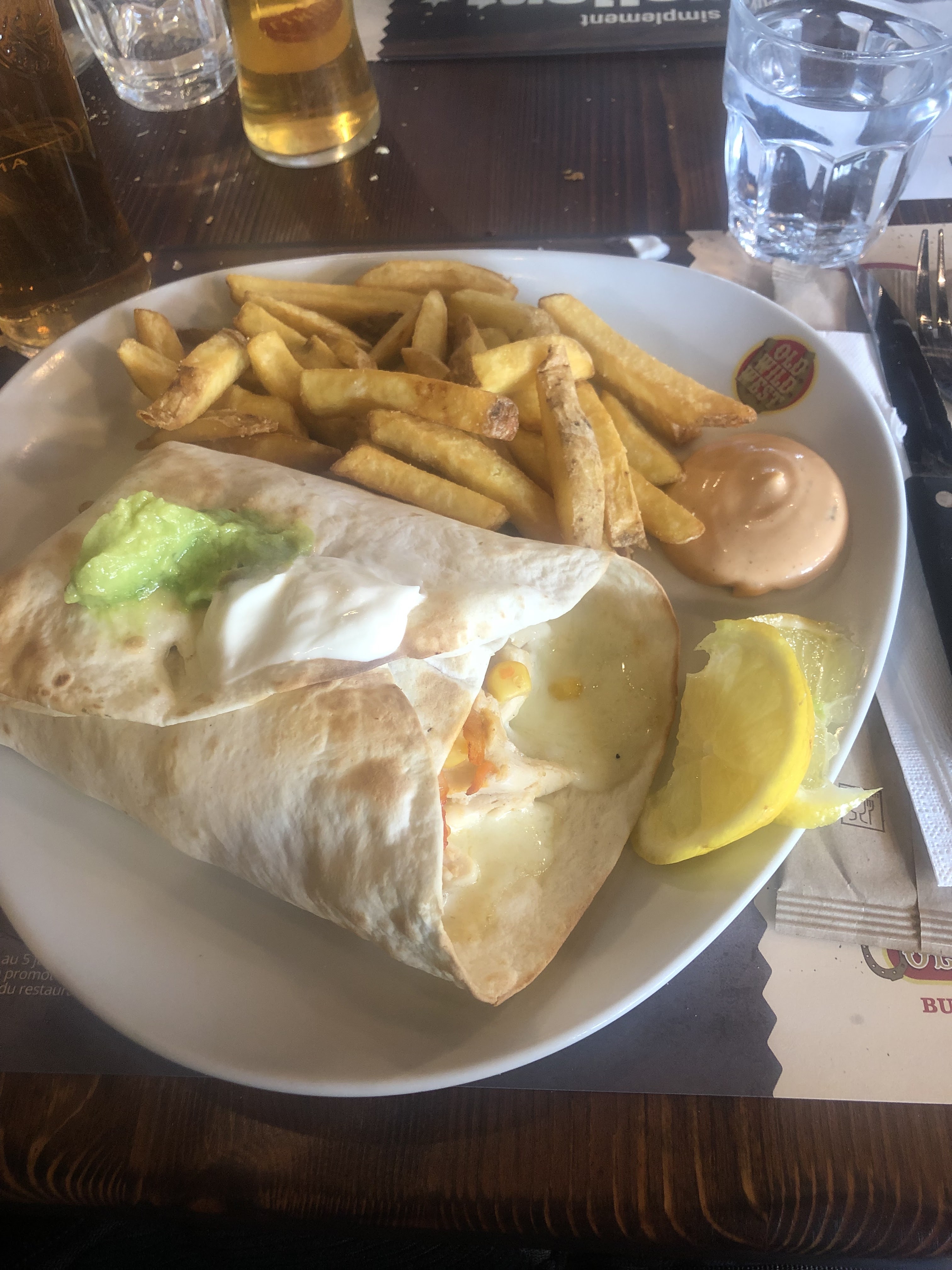 Plat très sec et peu goûteux. Il a fallu attendre 45min pour que l'on vienne prendre notre commande. Il faudrait peut-être songer à une autre organisation pour éviter ces désagréments.