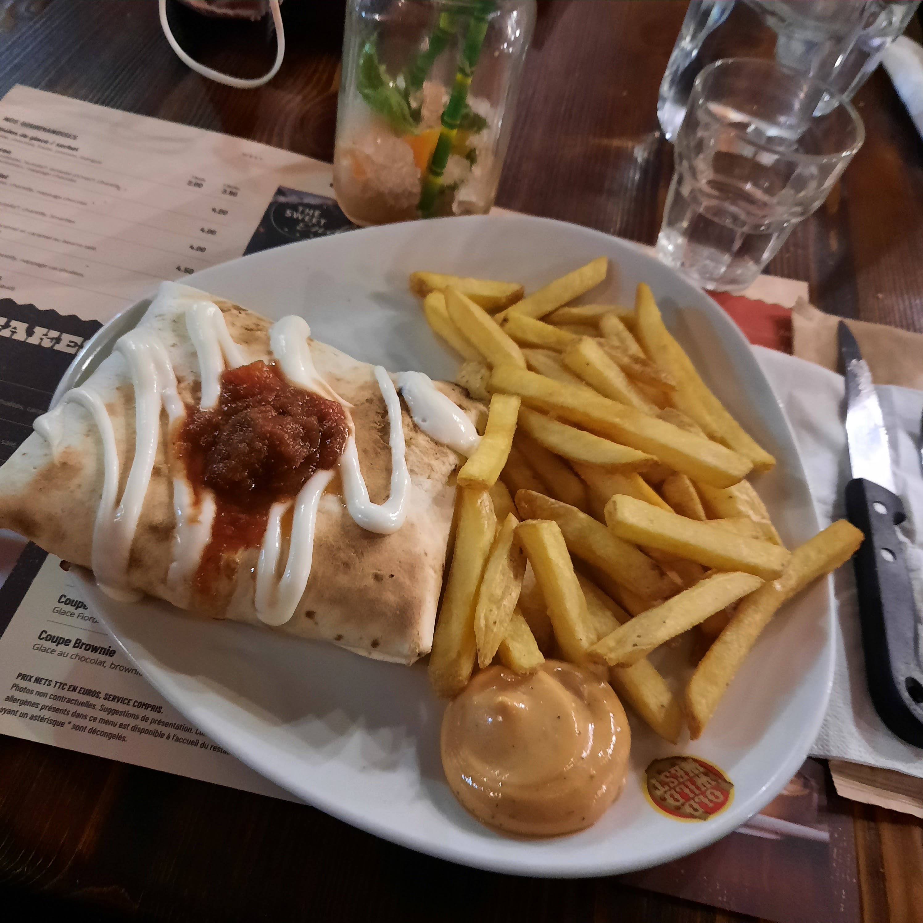 Portion de frites plus que ridicule Accompagnement sauce pas de choix juste imposée Pourrait franchement mieux faire