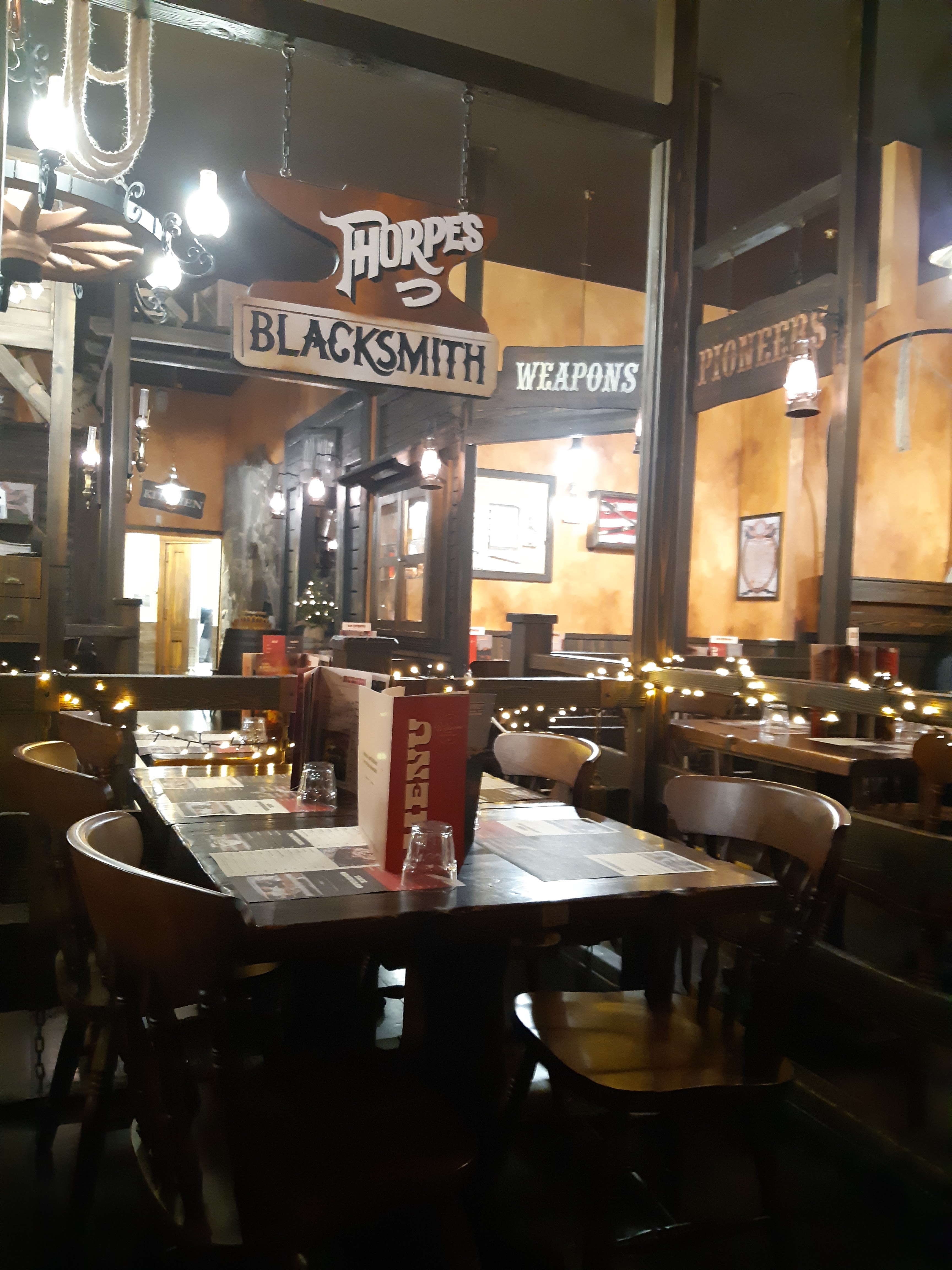 Des l entrée on est dans le far west. Le serveur nous prévient qu il y aura de l attente car il y a une petite restriction du personnel pour ce soir. Pour autant ils ont assuré ! Serveurs très sympa. La nourriture est très bonne et bon rapport qualité prix. Je recommande