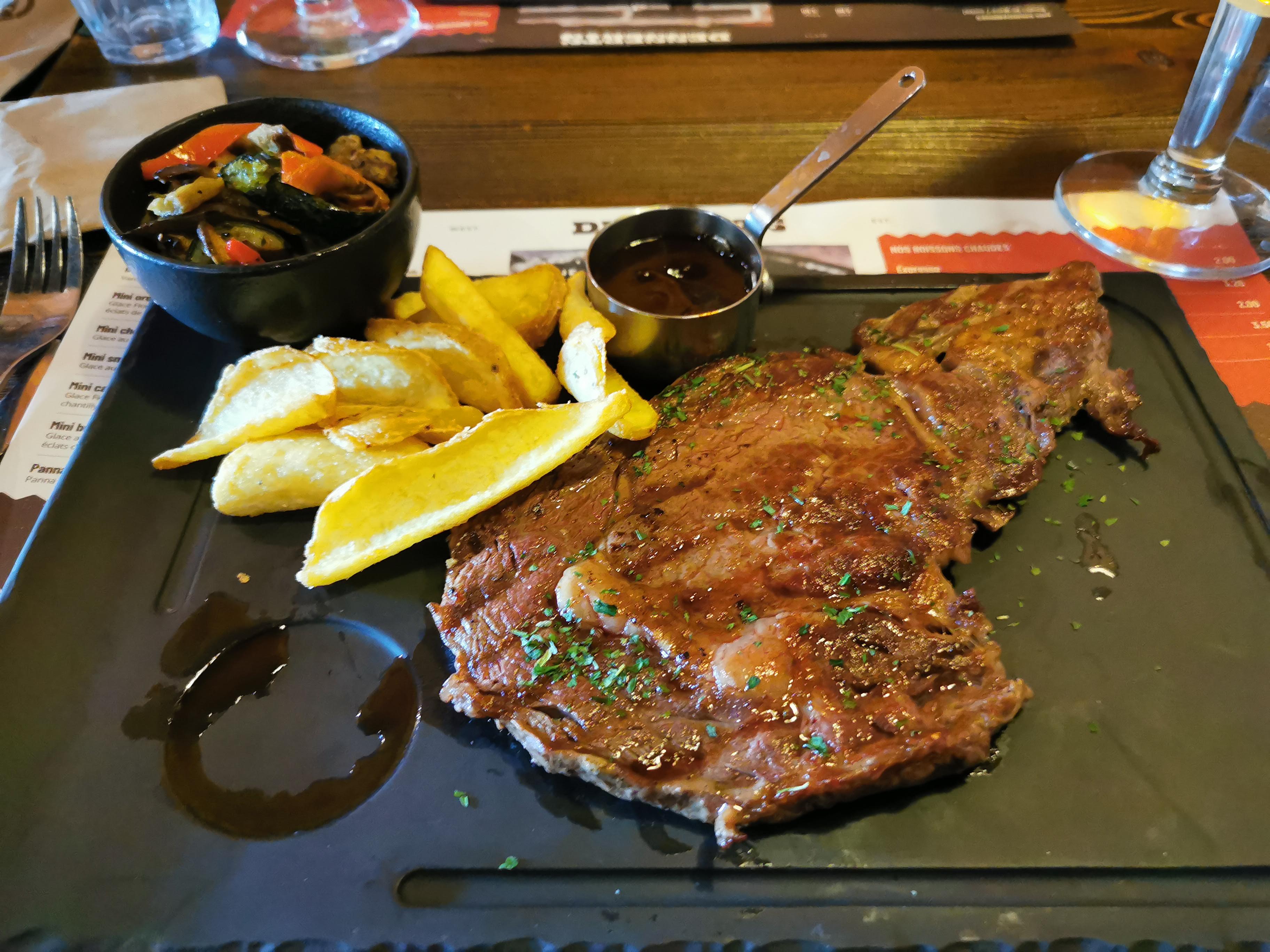 J'ai été assez déçu par les quantités : mon entrecôte de 350g était très fine, je n'avais pas de balance mais on devait être loin des 350g annoncés. Les quelques frites dans mon assiette n'ont pas compensé... En plus, le service a été un peu long ce jour là, mais le personnel était sympathique tout de même.