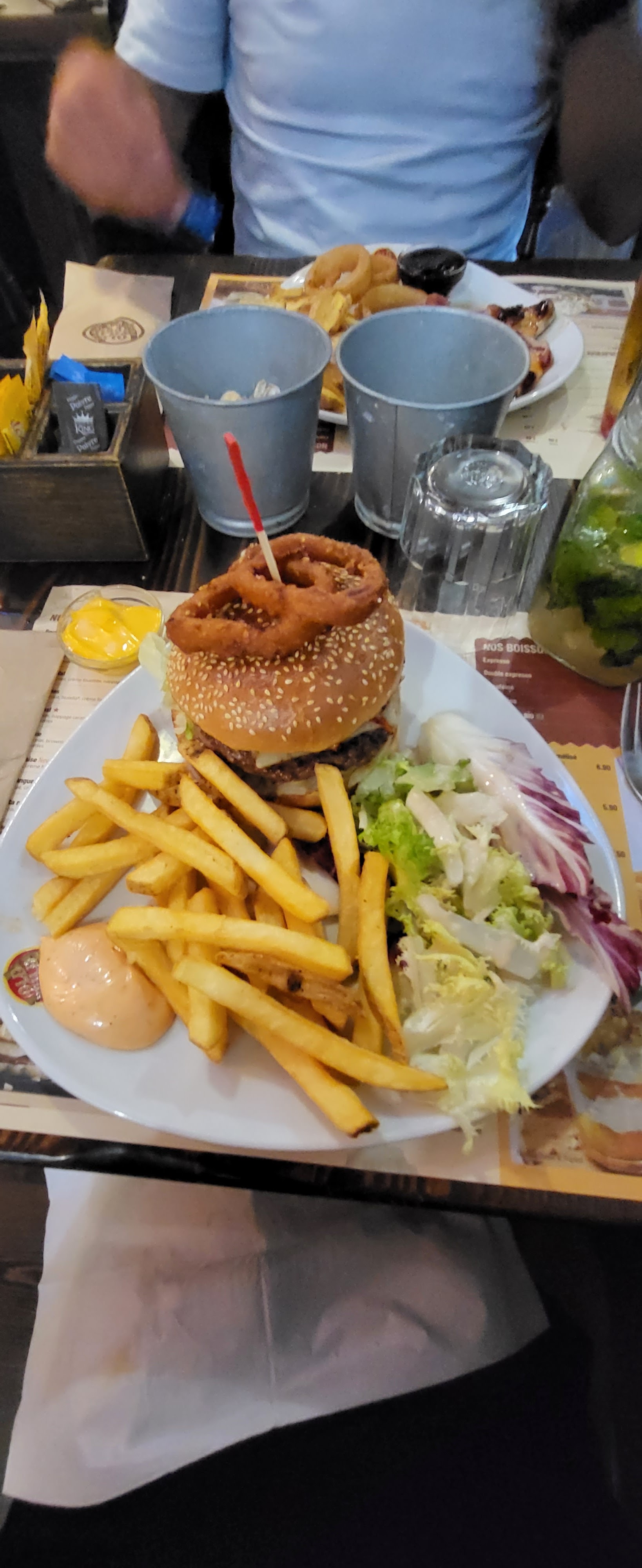 Beaucoup d'attente pour finalement être servi froid. La terrace est sympa, la qualité du burger ribs est ok. Les onion rings sont super notamment car il était chaud! La sauce barbecue est bonne.