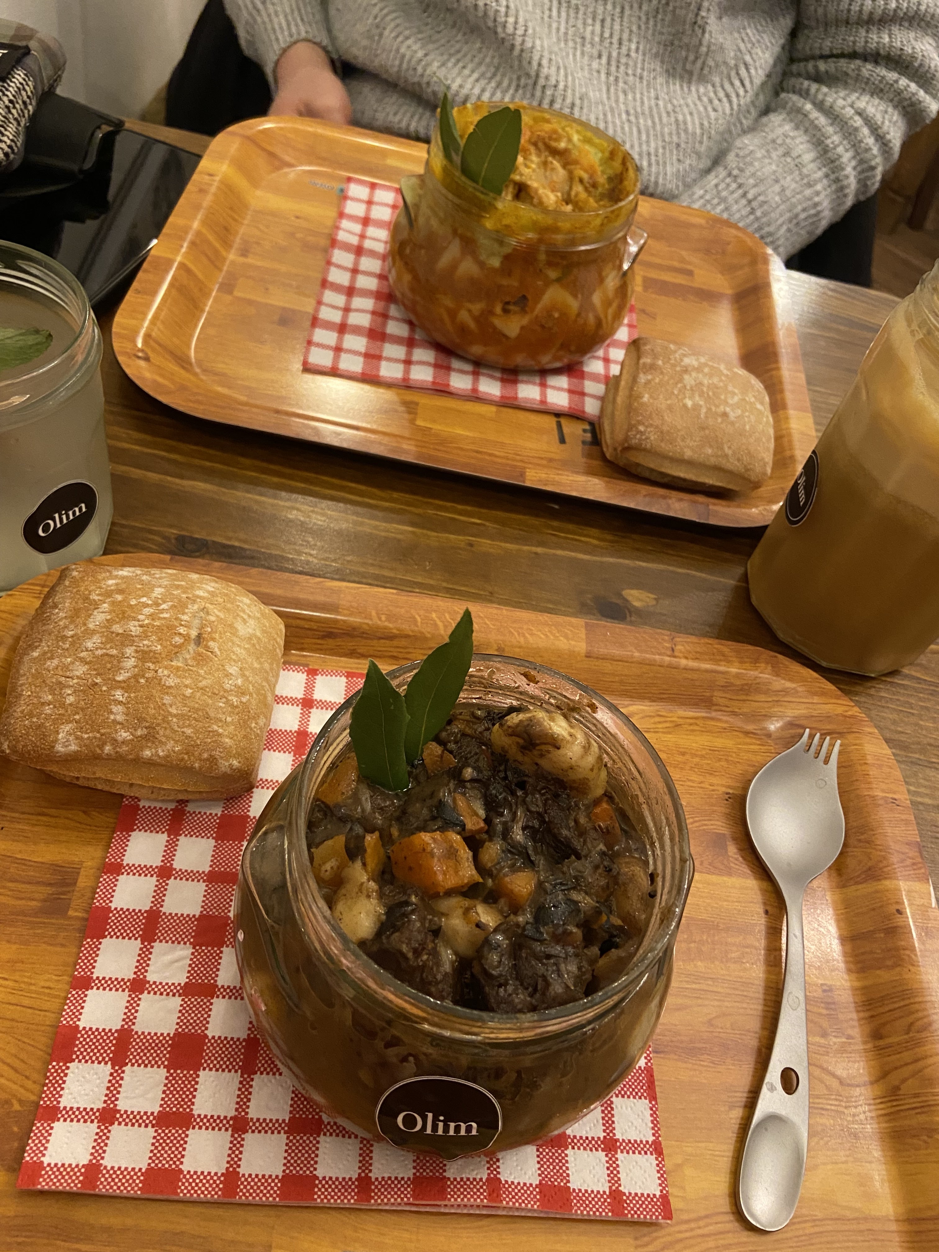 A tester sans hésiter ! L'équipe est vraiment très sympathique. Ambiance chaleureuse et décontractée Les plats sont 100% fait maison, ils sont délicieux et joliement servis dans des bocaux en verre. A bientôt OLIM !