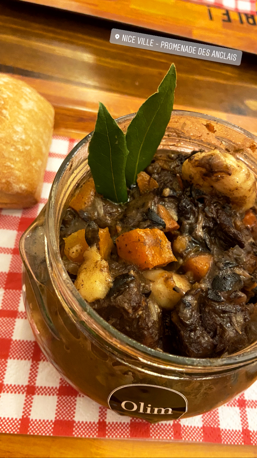 Heu... Comment dirais-je ? Ben en fait j'ai pas DU TOUT adhéré : D'abord il faut dire que le restaurant affiche le style restaurant français sur le thème des recettes de grand-mère... Alors toi t'es à Nice en France et puis tu vois un énergumène qui se pointe déguisé en... français avec une toque de... français donc avec un espèce de pantalon chemise de... ben français on va dire et puis il vient te servir des pâtes au fromage réchauffées au micro-ondes et bien trop cuites le tout servi dans un pot à confiture (et oui les fameuses recettes de grand-mère d'où le style confipote), pour 12 ou 13€ servies avec un jus d'agrumes encore dans un pot de confiture (toujours le fameux mite des confitures grand-mères) le tout sur une table branlante (et oui tu payes le style malformation)... De français le pseudo-restaurant n'en a hélas que le montant fort cher de l'addition. Pour 2 fois moins cher vous mangerez 2 fois mieux chez le turc... juste à côté... Déjà le nom du restaurant Olim Meyer beer tu comprends pas, le concept de recettes de grand-mère servies dans des pots à confiture ben ça fait rire et puis le label restaurant français la ça fait carrément sourire ou plutôt pleurer 😭 Une vraie cata 😱, mon conseil: passez votre chemin ou allez manger chez le turc à côté et pas bien noté... mais bon ce sera toujours meilleur 😱
