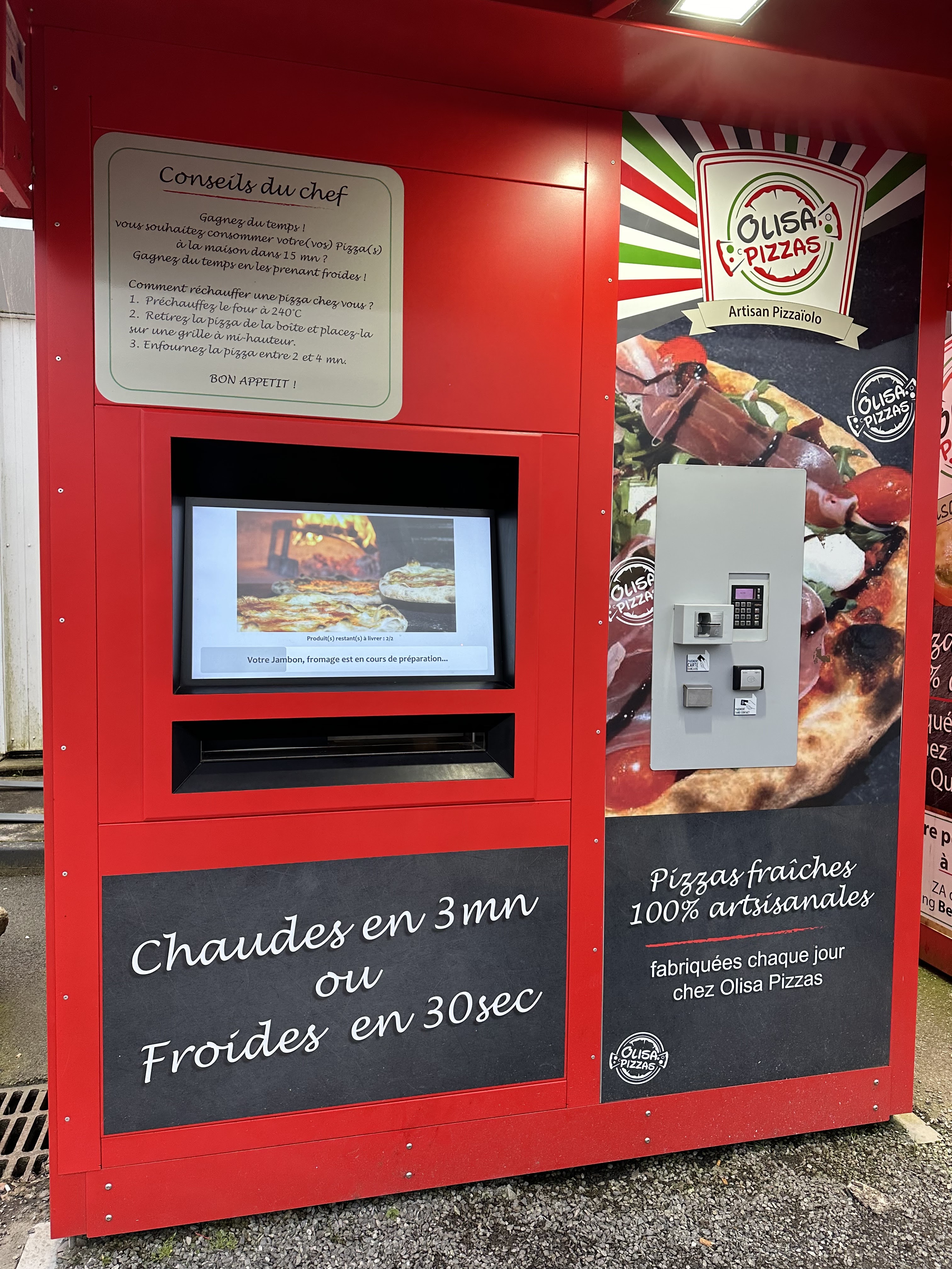 Franchement j étais sceptique et ben non seulement c’est prêt rapidement et en plus elles sont bonnes , pas trop épaisses , pas trop fine et bien garnies . Très pratique car ouvert h24 7/7 j . Au choix de la faire cuire chez vous ou sur place ce qui est pas mal au moins quand on habite pas à côté vous êtes sûr de la manger chaude. Bref je recommande !
