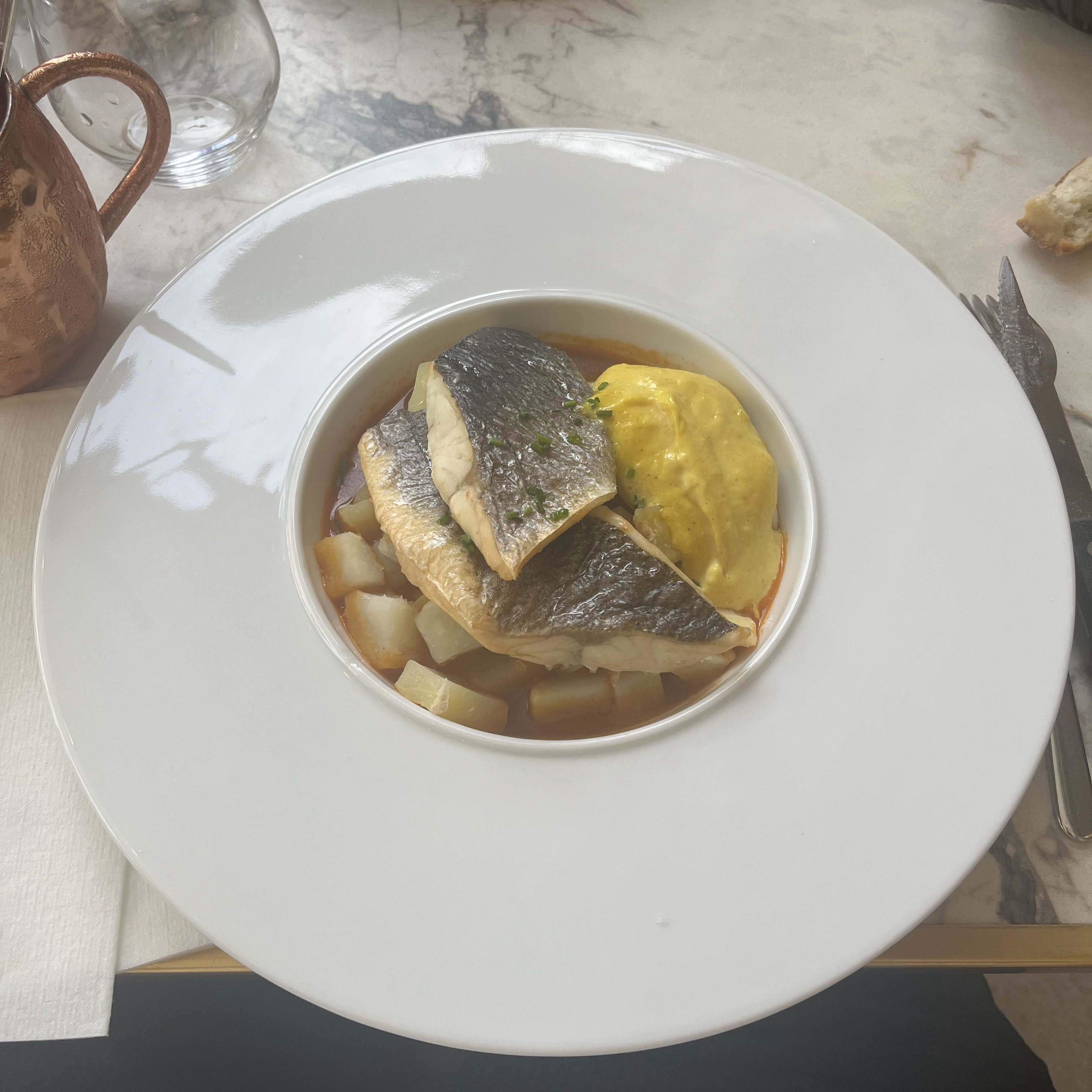 Assiette de qualité très goûteuse et gourmande . j'ai pris le loup bouillabaisse. Resto recommandé par Loumna de caffe San Carlo (merci) prix légitime