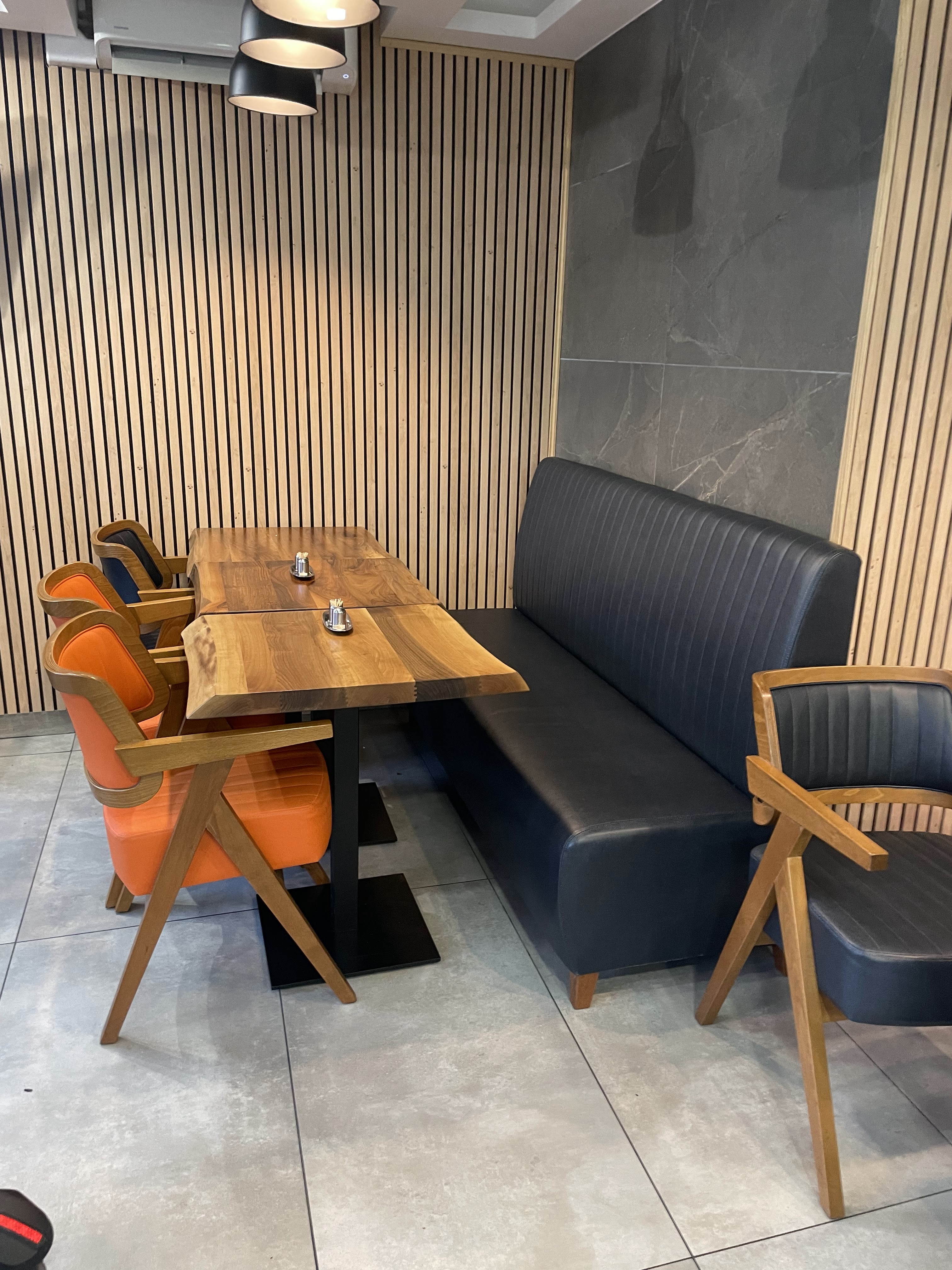 je vais m'être 5 étoile car le service et plutôt rapide, le personnelle très gentil et accueillent et peux discuter avec vous en attendent votre plat. Il y a un très bon design franchement très beau mais il ne fais pas tout, au menu j'ai prit un tacos 3 viande (tenders, cordon bleu, kebab) avec des supplément (frite, chedar), franchement le tacos il et très gros avec beaucoup de garniture, mais la sauce il y 'en a trop d'un coter et pas assez de l'autre c'est ça qui et dommage, mais la sauce elle reste très bonne, je vous conseille d'allez la bas je suis allez que 2 fois la bah mais c'est très bon